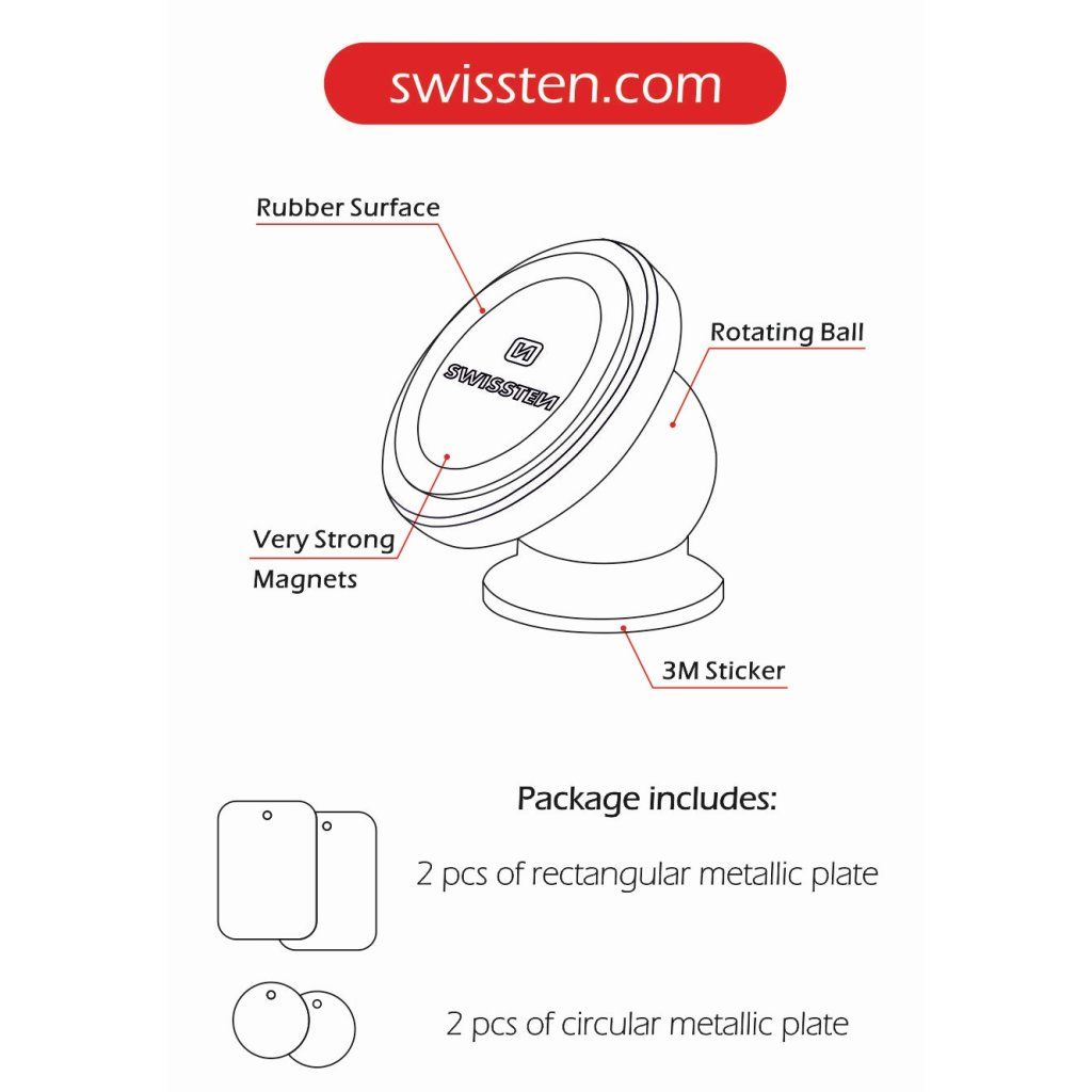 Magnetický držák do auta S-GRIP DASHBOARD M2 lze přichytit přímo na palubní desku. Rotační koule držáku umožňuje umístit Vaše zařízení do libovolného úhlu. Disponuje velmi silným magnetem. Baleno v blistru Swissten.Specifikace: