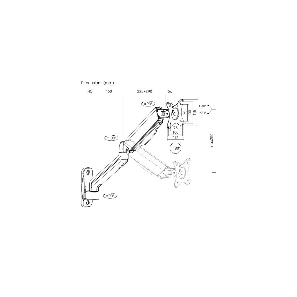 - Univerzální kompatibilita: Tento nástěnný držák je kompatibilní s většinou monitorů o velikosti od 17" do 32" palců a s VESA standardy 75x75 mm a 100x100 mm. Nezáleží na tom, zda používáte LCD, LED nebo OLED monitor, držák monitoru Brateck poskytne bezpečné a stabilní uchycení.