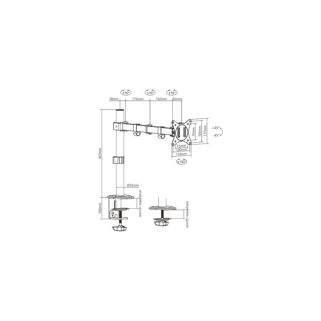 - Stolní držák monitoru s jedním ramenem monitoru