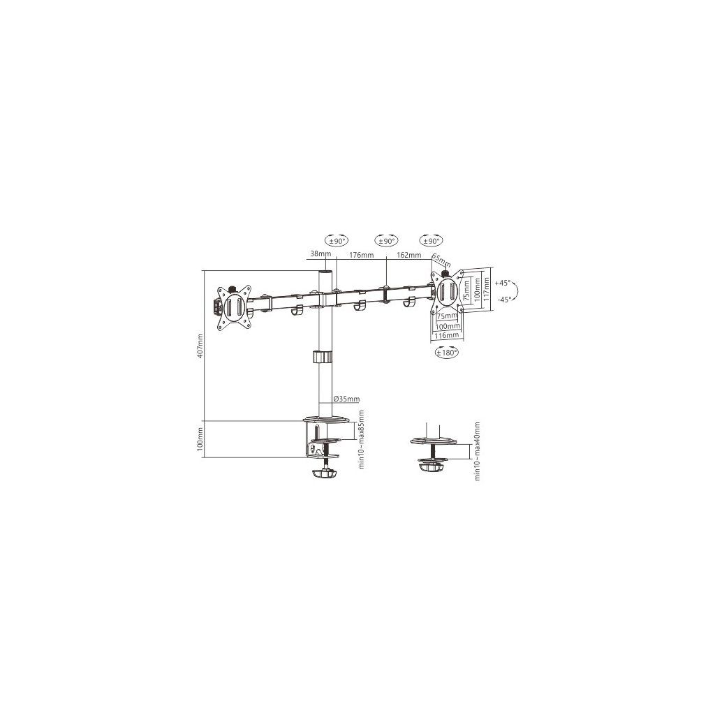 - Stolní držák monitoru s dvojitým ramenem monitoru