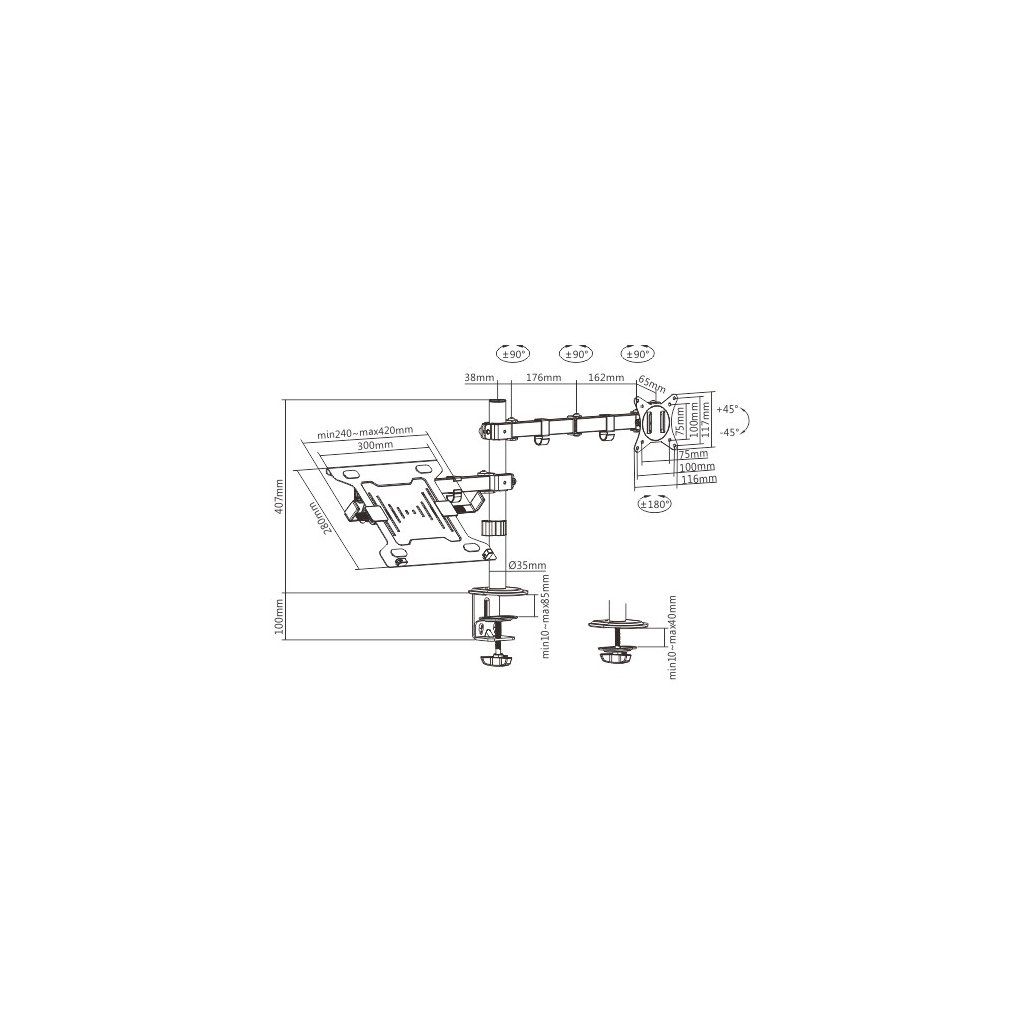 - Držák na stůl s ramenem monitoru a stojanem na notebook
