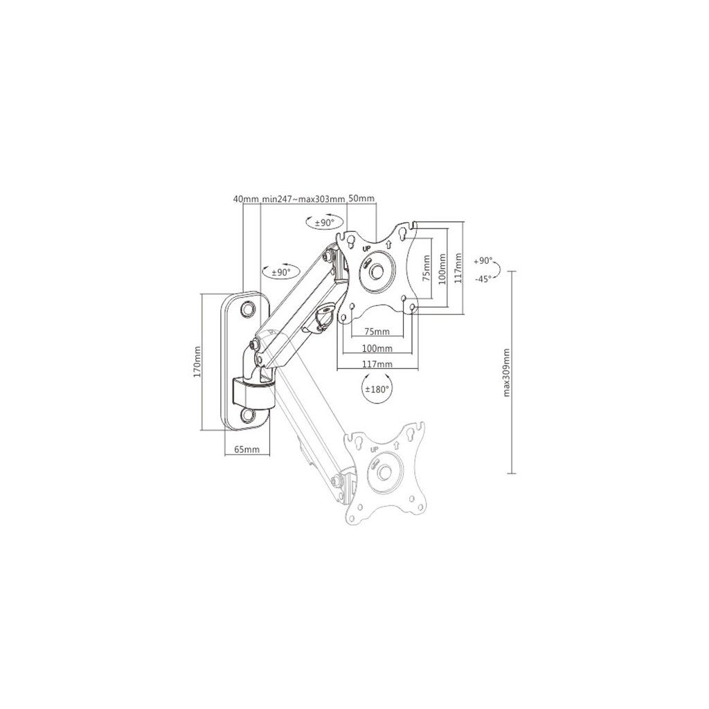 - Držák monitoru na stěnu s jedním ramenem monitoru