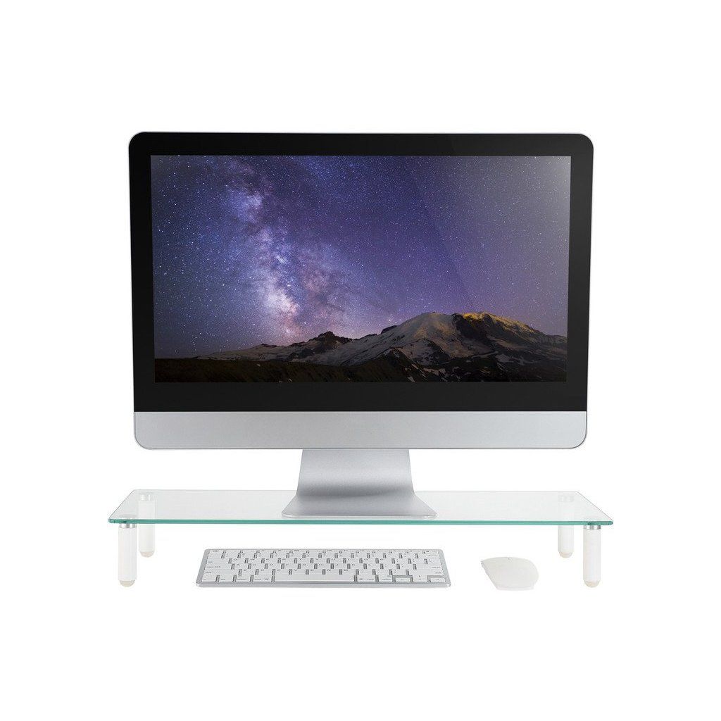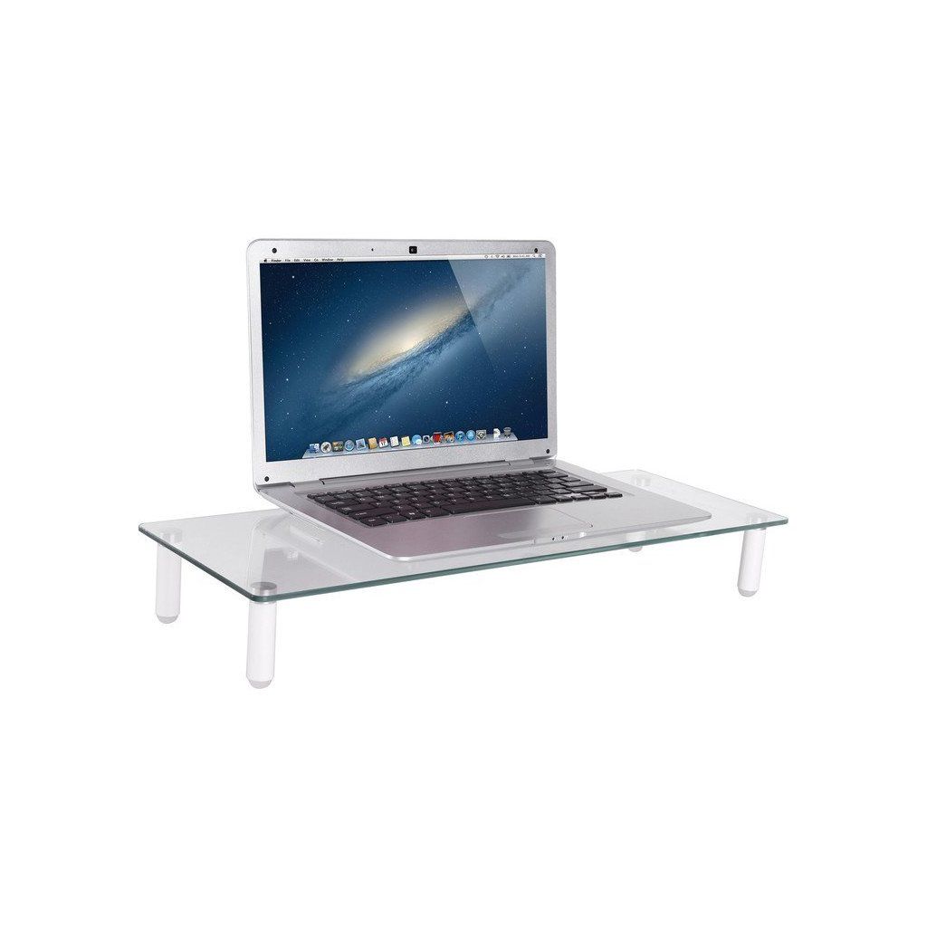 Podstavec je určen pro všechny monitory a skládá se z elegantní skleněné desky a kovové základny. Tvrzené sklo o šířce 5 mm má protiskluzové podložky ze silikonu a je celkově ergonomicky přívětivé. Kompletace probíhá bez nářadí a lze i jednoduše složit, pokud ho nebudete potřebovat. Maximální nosnost činí 20 kg.