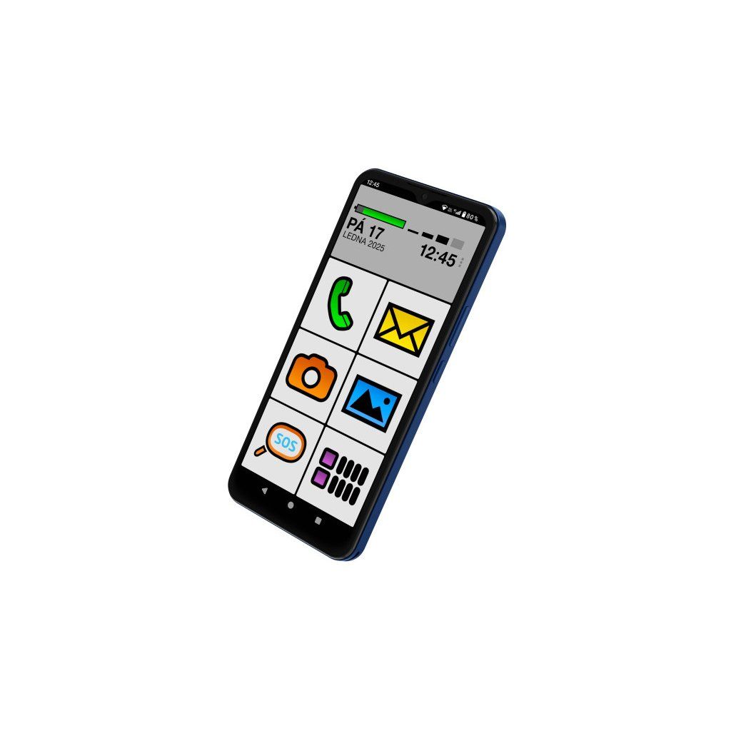 Klíčovou funkcí je SOS Locator - tlačítko pro nouzové volání přímo na hlavní obrazovce, které automaticky vytočí přednastavené číslo a odešle SMS s přesnou polohou telefonu. Smartphone pro seniory je vybaven moderními funkcemi jako čtečka otisků prstů, odemykání obličejem a vyměnitelnou baterií s kapacitou 4000 mAh pro celodenní výdrž.