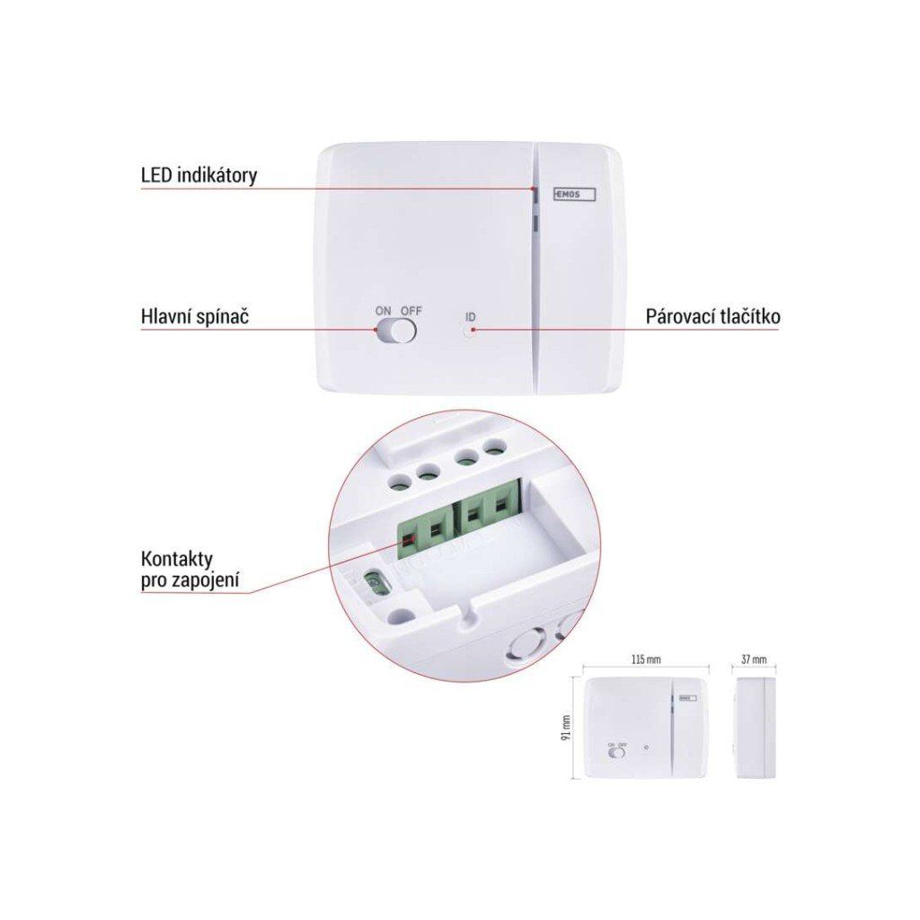 - Self-learning párování: automatické generování unikátního párovacího kódu, možnost připojení až 10 přijímačů pro rozšíření sestavy.