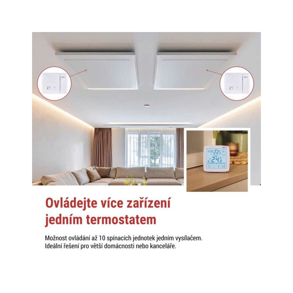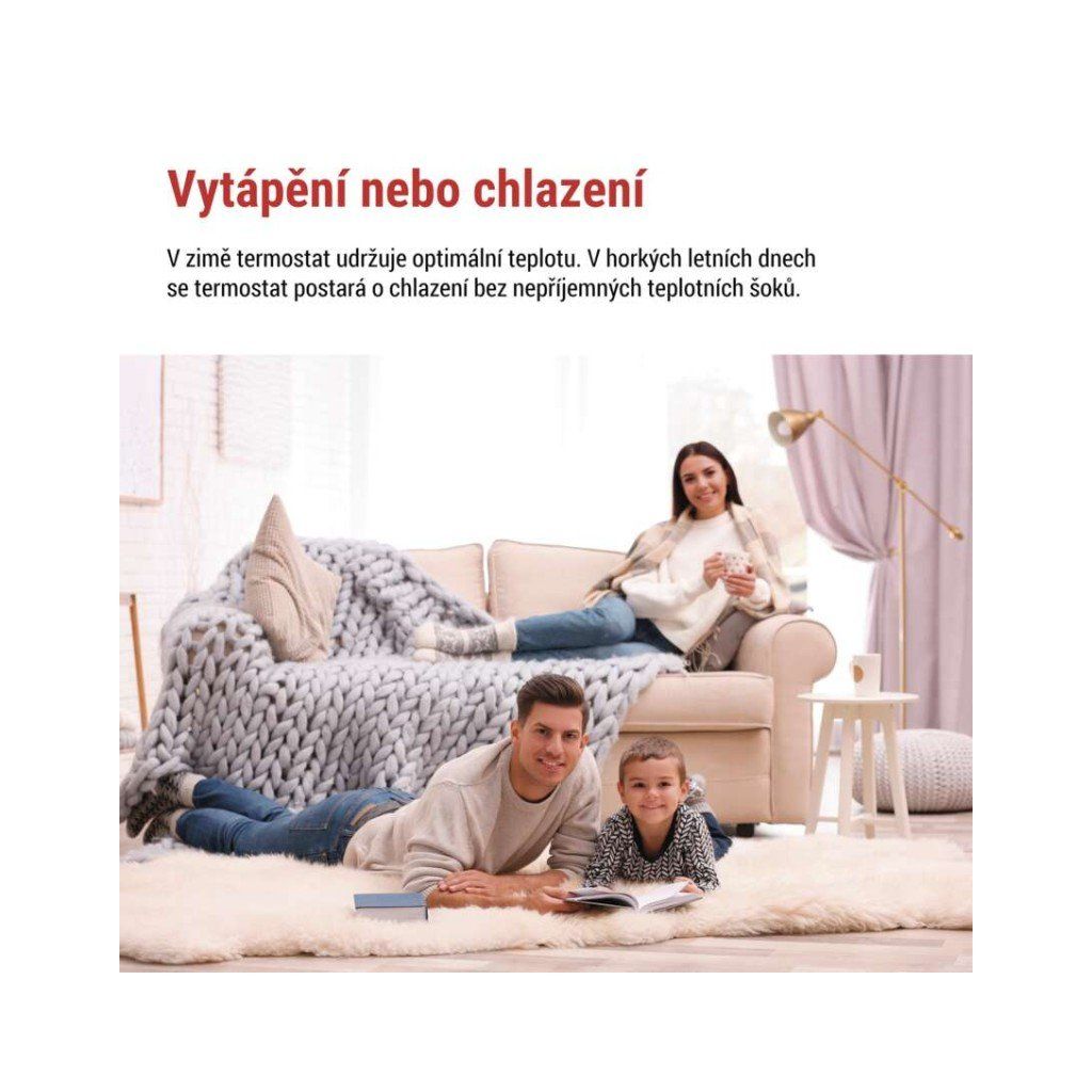 - Typ ovládání: programovatelný elektronický pokojový termostat.