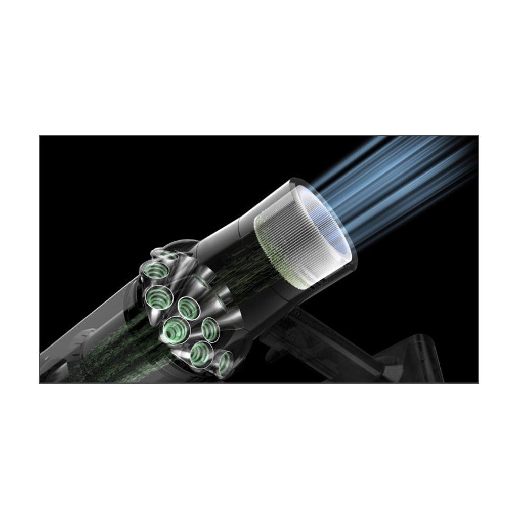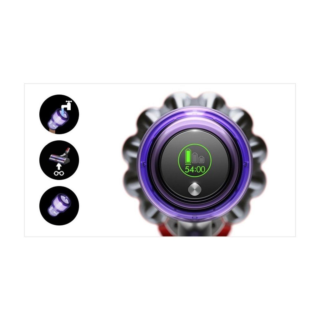 Jedinečná technologie akumulátorů Dyson s integrovaným systémem řízení výkonu optimalizuje výkon baterie. Spouštěcí tlačítko baterii šetří a poskytuje pouze potřebný výkon k aktuálnímu úklidu.