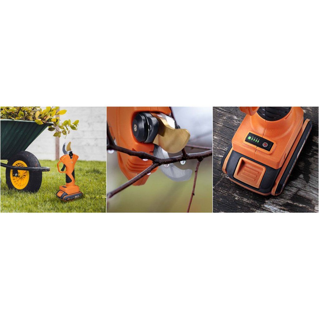 Profesionální akumulátorové zahradní nůžky Solight s výkonným bezuhlíkovým motorem představují ideální řešení pro všechny zahradníky, kteří hledají spolehlivý nástroj pro údržbu svých stromů a keřů. Tyto elektrické zahradní nůžky jsou navrženy pro efektivní prostříhávání větví s tloušťkou až 30 mm a díky pokročilé technologii zajišťují vysoký výkon při mimořádně dlouhé životnosti.