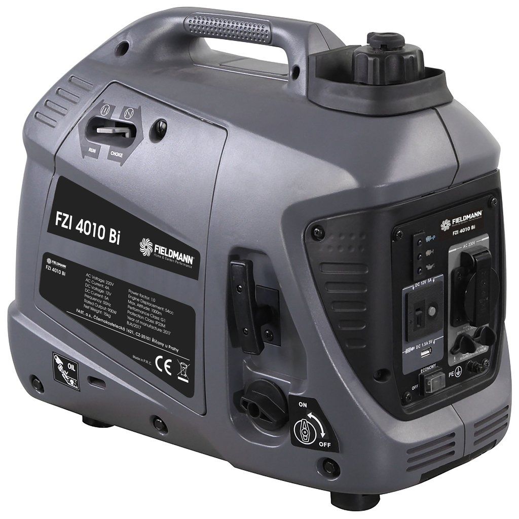 Výstupy 230 V, 12 V a USB port pokryjí všechny vaše nároky na zapojení elektroniky. Kvalitní motor OHV poskytuje stálý výkon 900 W a maximální výkon je až 1 000 W. Díky nízké spotřebě vám nádrž o objemu 3 l vydrží zhruba na 8,5 hodin provozu. Tento kompaktní generátor váží pouhých 14 kg, můžete ho tak snadno převážet v autě a mít elektřinu na dosah zmáčknutí tlačítka. Benzínová centrála FIELDMANN FZI 4010-BI poskytuje skvělý výkon za rozumnou cenu.