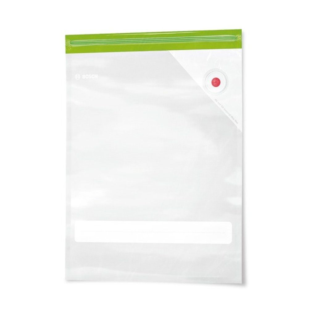 Vakuový sáček Uchovejte své potraviny déle čerstvé: bez přístupu vzduchu vydrží uskladněné potraviny v chladničce, mrazničce nebo ve spíži mnohem déle. Pro opakované použití: odolný materiál bez obsahu BPA, s praktickým dvojitým zipem, vhodný do myčky nádobí. Sous-vide: vakuové sáčky na zip jsou vhodné pro přípravu masa, ryb nebo zeleniny metodou sous-vide. Kompatibilní vakuový těsnící ventil: vhodný pro vakuovací nástavec tyčového mixéru Bosch ErgoMixx. Obsahuje: 10 velkých vakuových sáčků na zip (3,8 l).Doplňkové parametry