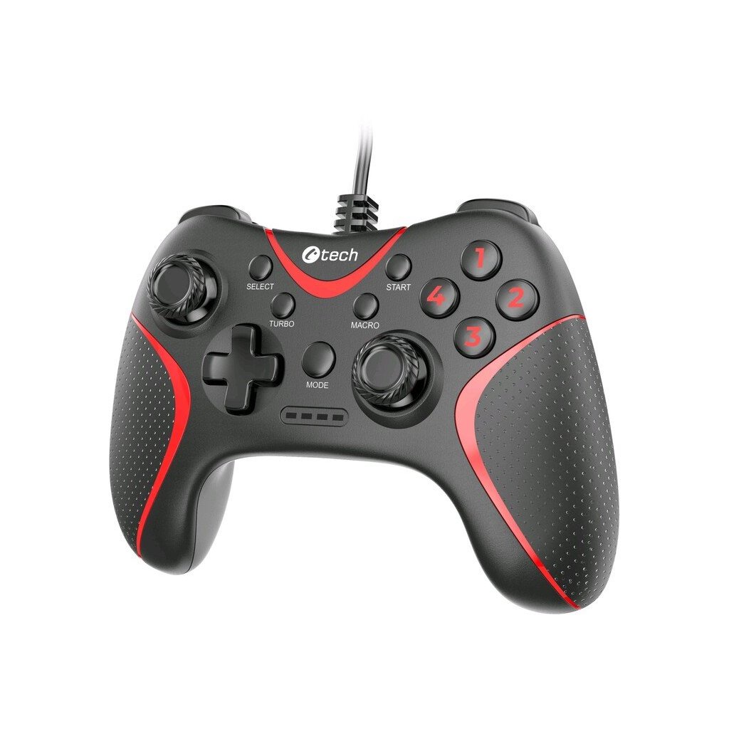 Gamepad C-TECH THEON Vám nabídne ještě lepší herní zážitky. 15 tlačítek, dva analogové joysticky, osmisměrný ovladač a 2 vibrační motorky. Zní to jako standard? Budete velmi mile překvapeni. THEON má unikátní design, díky kterému nabídne něco, co u konkurence nenajdete: vespod gamepadu další 2 programovatelná makro tlačítka. Přímo z gamepadu jim můžete pomocí funkce makro přiřadit sekvenci stisku několika kláves.