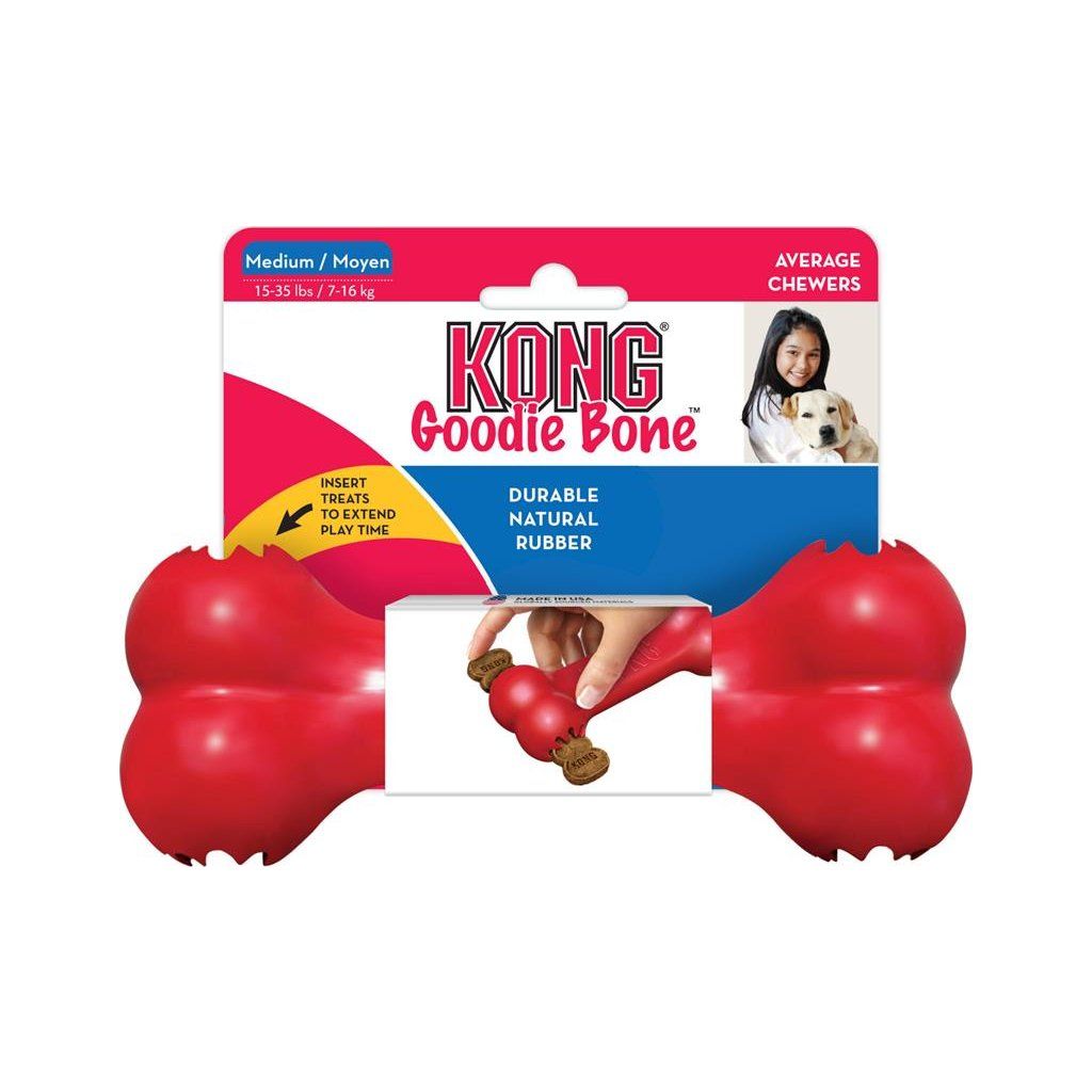 Hračka KONG Goodie kost je určena psům, kteří milují klasický tvar kosti, ale potřebují bezpečnou gumovou hračku. Je vyrobena z přírodní pryže, a psi tak mohou žvýkat do sytosti. Chcete svému čtyřnohého kamarádovi prodloužit dobu zábavy a objevování? Naplňte konce hračky pamlsky. Díky této funkci se hračka pro psa stane zábavnou výzvou.