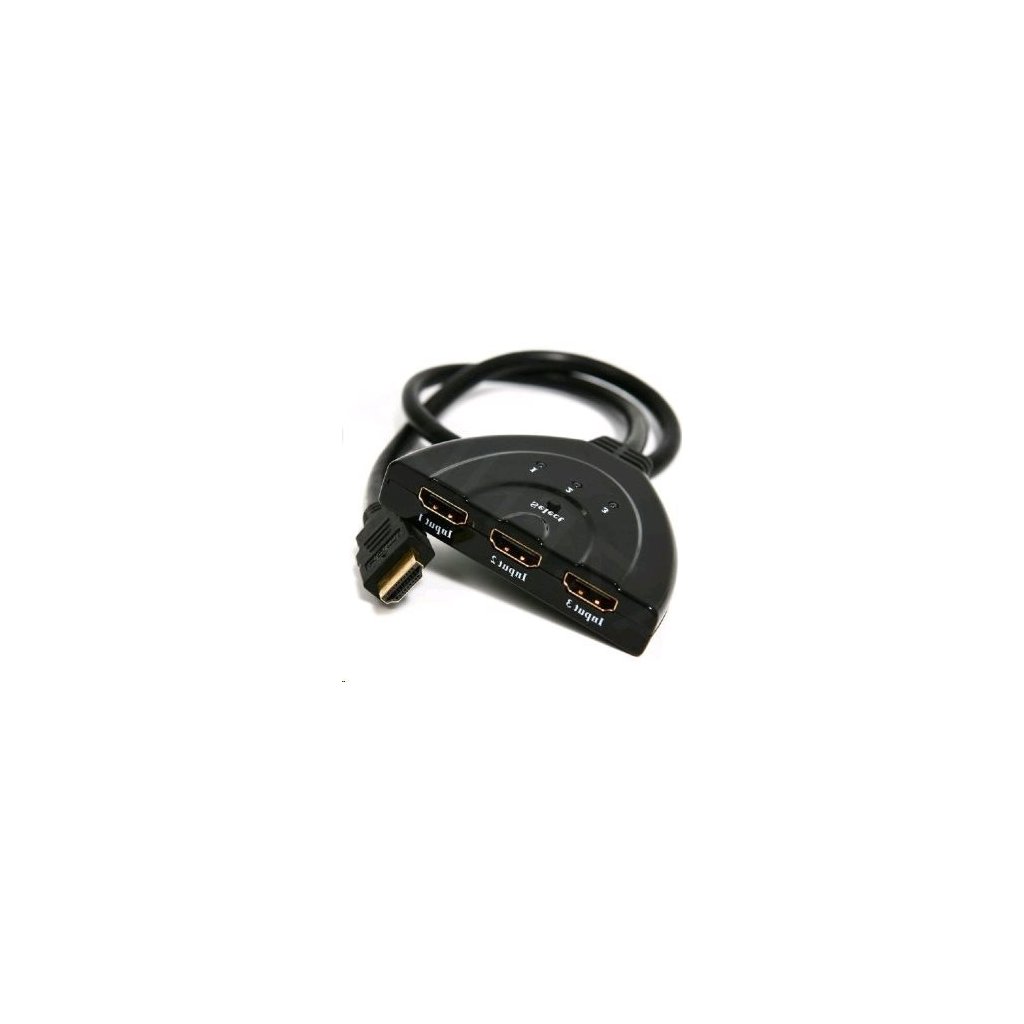Umožňuje používat 3 HDMI zdroje na 1 TV. Specifikace Ports: 3x input, 1x output HDMI port Interface standard: HDMI + HDCP v.1.4 backward compatible with versions 1.0/1.1/1.2/1.2a/1.3b Video formats: HDMI of 480i, 576i, 480p, 576p, 720p, 1080i, 1080p, 4K x 2K (3840 x 2160 at 24/25/30 Hz, 4096 x 2160 at 24 Hz) Input cable: 0.5 m Output cable distance: up to 25 m AWG26 HDMI standard cable Power consumption: 5 V DC up to 0.15 A Dimensions: 77 x 56 x 15 mm Net weight: 0.16 kgDoplňkové parametry
