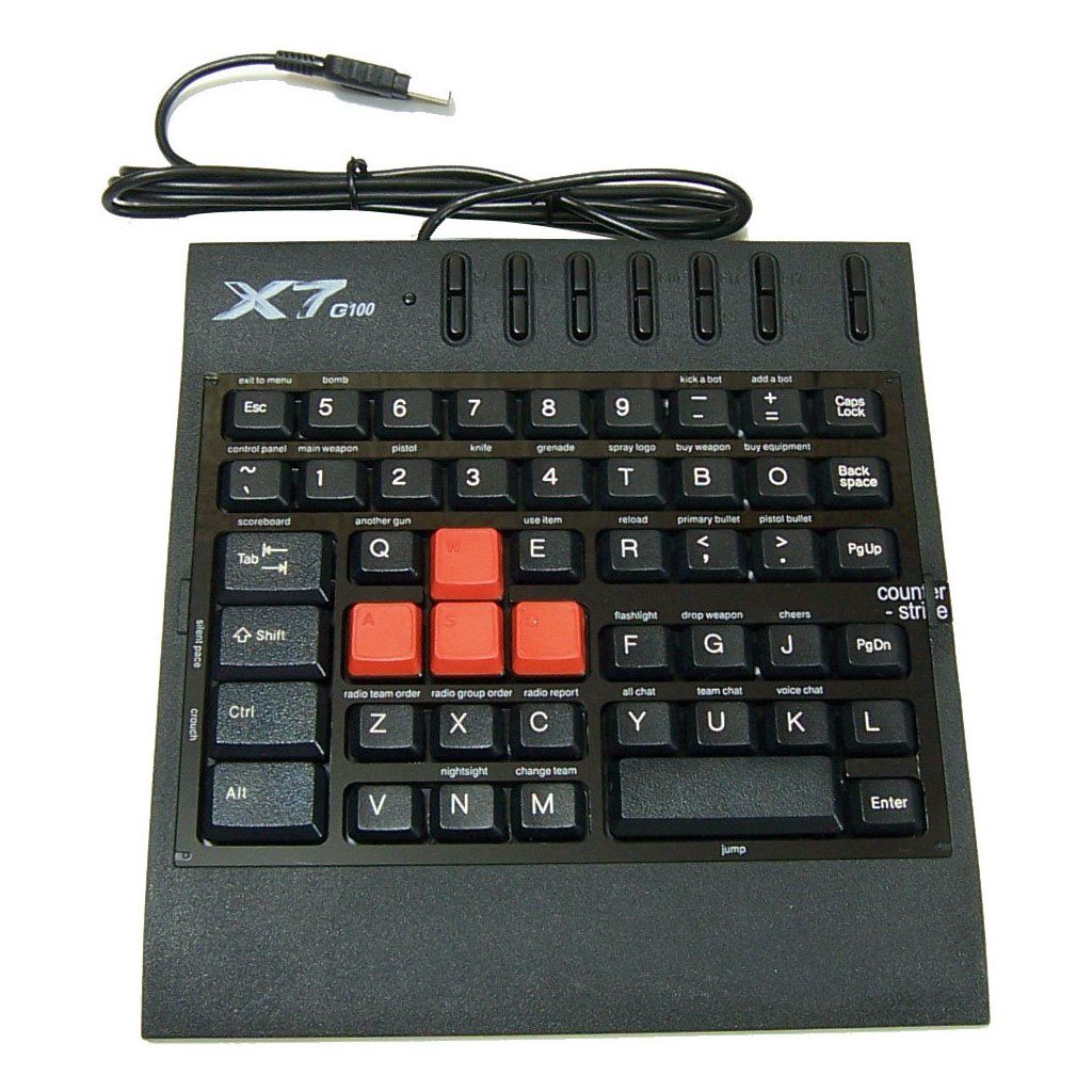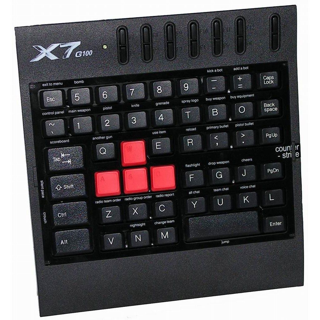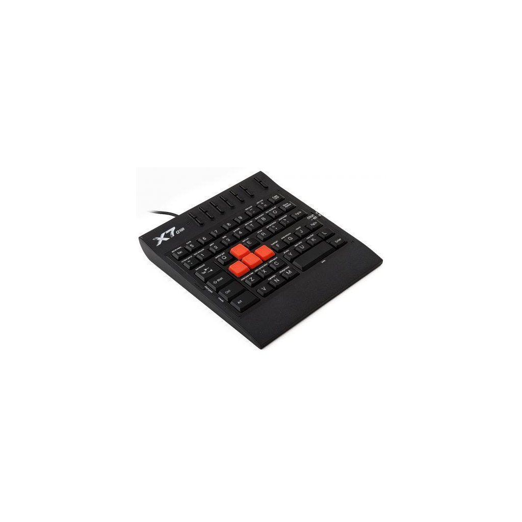 Firma A4tech zabývající se výrobou kvalitních herních periferií přichází s novinkou určenou především pro náruživé hráče počítačových her - s netradiční herní klávesnicí G100. Její rozložení kláves je totiž speciálně upraveno pro potřeby hráčů a obsahuje tedy pouze nejpoužívanější klávesy, jejichž funkce ve hře jsou navíc pomocí 4 druhů štítků dopodrobna popsané. Dále potěší pogumování tlačítek WSAD a dlouhé LAN párty pro vás neskončí ani v případě, že klávesnici omylem polijete vodou, je totiž vodotěsná.