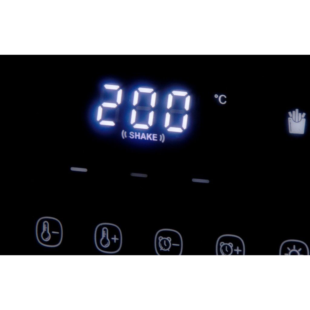 Fritéza je vybavena digitálním dotykovým ovládáním s přehledným LED displejem a nabízí 8 automatických přednastavených programů pro různé typy pokrmů. Vnitřní osvětlení umožňuje perfektní kontrolu přípravy, zatímco hranatý tvar fritovací nádoby zajišťuje maximální efektivitu cirkulace vzduchu a rovnoměrné propečení.