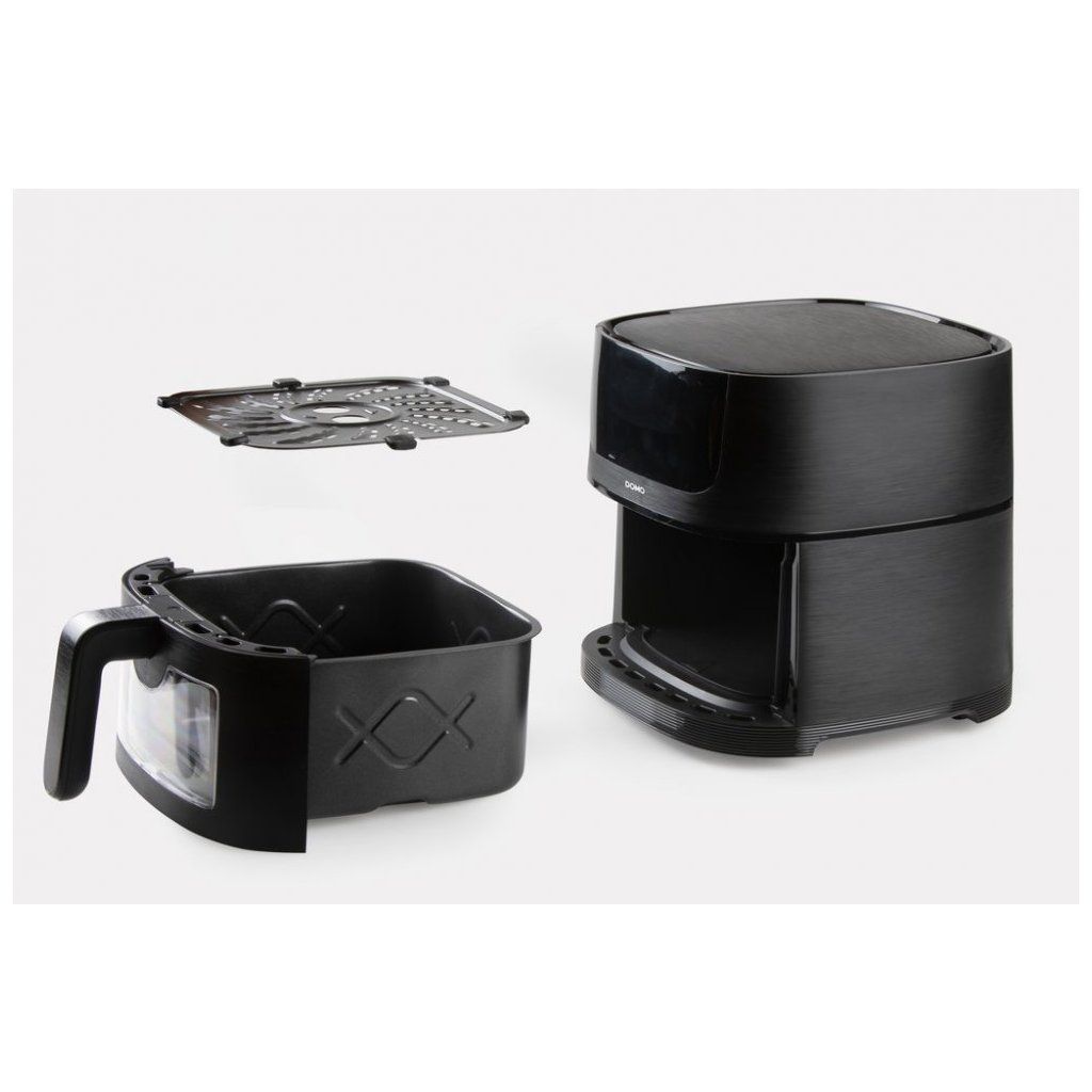 DOMO DO542FR je kompaktní horkovzdušná fritéza s průzorem a objemem fritovací nádoby 4 l, určená pro přípravu pokrmů s minimálním množstvím tuku. Díky praktickému hranatému tvaru koše pojme až 1 kg surovin a nabízí přehledné digitální ovládání s přednastavenými programy pro rychlé a snadné použití. Skleněný průzor a vnitřní osvětlení umožňují sledovat průběh přípravy bez nutnosti otevírání přístroje.