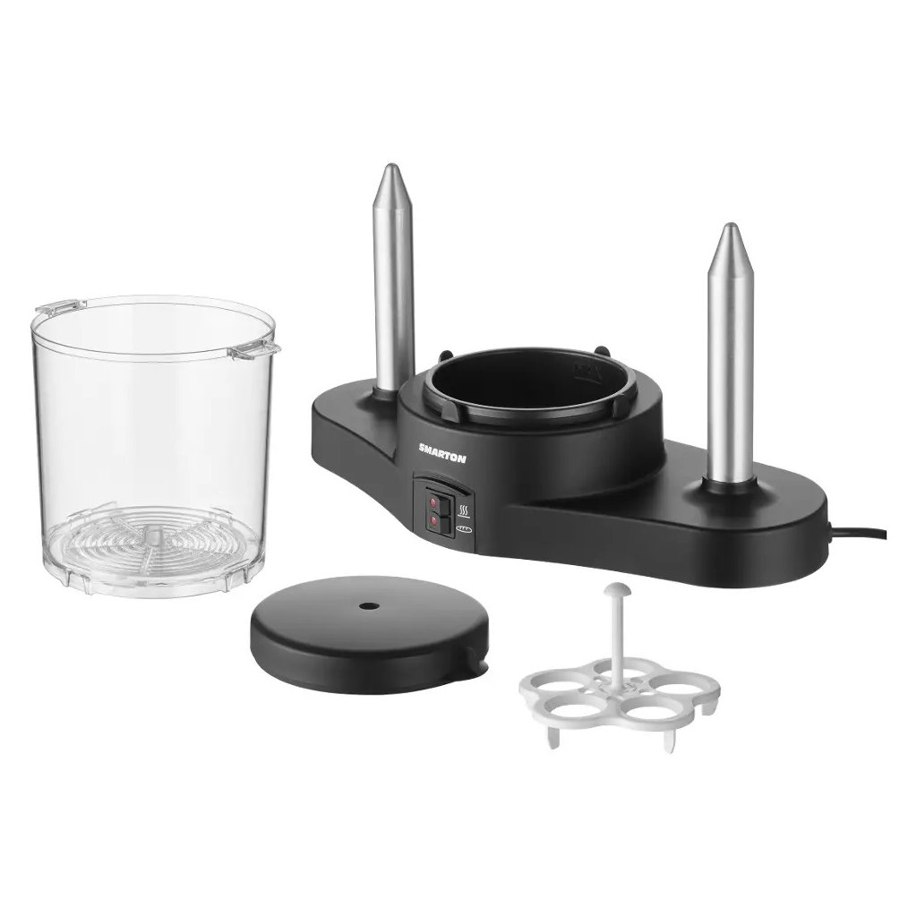 Hotdogovač Smarton HM 200 je praktický kuchyňský pomocník pro rychlou a pohodlnou přípravu domácích párků v rohlíku. Díky parnímu ohřevu dokáže najednou připravit až 14 párků, což z něj činí ideální volbu pro rodinné večeře, grilovací večírky nebo rychlé svačiny. Přístroj disponuje 2 vertikálními trny s hrotovou špičkou, které umožňují bezpečné a snadné nasazení pečiva bez rizika roztrhnutí.