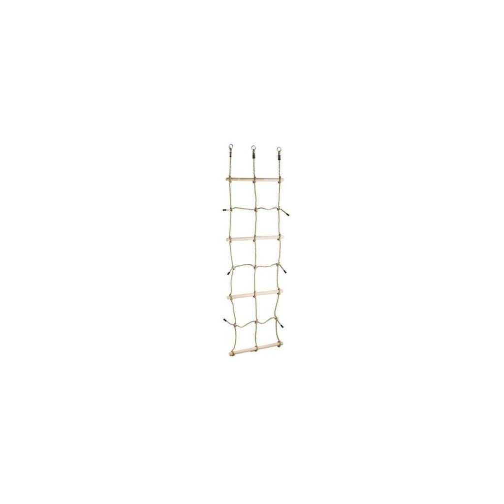 Šplhací síť s dřevěnými příčkami s 3 závěsnými kroužky.