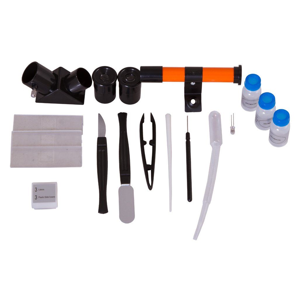 Sada obsahuje všechny potřebné nástroje pro přípravu mikroskopických preparátů a provádění vzrušujících experimentů.