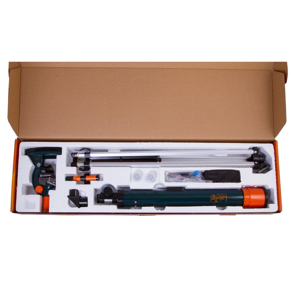 Teleskop Levenhuk LabZZ MTB3 je čočkový dalekohled neboli refraktor nabízející zvětšení až 120x. Pomocí tohoto teleskopu může mladý průzkumník vesmíru spatřit krásu planet sluneční soustavy a úžasnou měsíční krajinu. Aby bylo možné provádět i pozemní pozorování, sada obsahuje také diagonální zrcátko, díky čemuž je výsledný obraz správně svisle orientován.