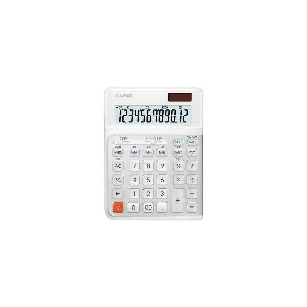 Stolní kalkulačka Casio DE-12E-WE Výpočetní funkce Výpočet DPH Převody měn (3 sazby) Profesionální výpočet procent Výpočet marže s klávesou procent Výpočet odmocniny Klávesa změny znaménka (+/-) Přepínač zaokrouhlování Tlačítko dvojité nuly Vyrovnávací paměť Paměť celkového součtu GT 4tlačítková paměť Displej 12místný LCD displej Indikace zadané funkce Oddělovač řádů/tisíců Duální napájení (solar/baterie) Záložní baterie Automatické vypnutí Plastová tlačítka klávesnice Kovový panel klávesnice Odolné klávesy Heavy-duty Gumové nožičky Ergonomicky tvarovaná tlačítka klávesnice Speciální klávesy tlumící nárazy Ergonomická klávesnice pro uživatele-praváky Výhody Ergonomicky designováno pro uživatele-praváky. Klávesnice je konfigurována inovativní schodišťovou konstrukcí se sklonem 3° zleva doprava. V porovnání s konvenčními kalkulačkami tato inovativní konstrukce klávesnice způsobuje menší natočení podpaží a rotaci zápěstí ruky, protože se přizpůsobuje přirozenému držení prstů a ruky. Schodišťová konstrukce umožňuje dokonalé svislé úhozy a tím usnadňuje stisk kláves, snižuje zátěž a pomáhá předcházet úrazům z opakovaného namáhání. Tím se snižuje svalová aktivita těchto 3 svalů: pronator teres, extensor carpi radialis a flexor carpi radialis. Rozměry 140 × 35 × 188 mm Hmotnost 295 gDoplňkové parametry