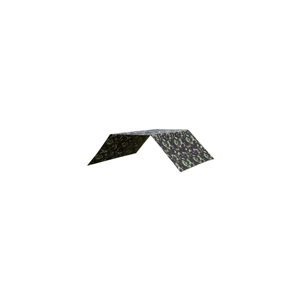 Lehká celta v lesní kamufláži s rozměry 3 x 4 m.