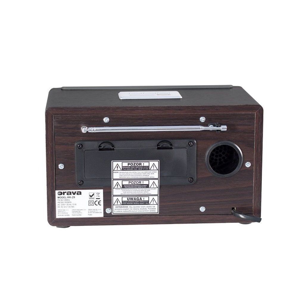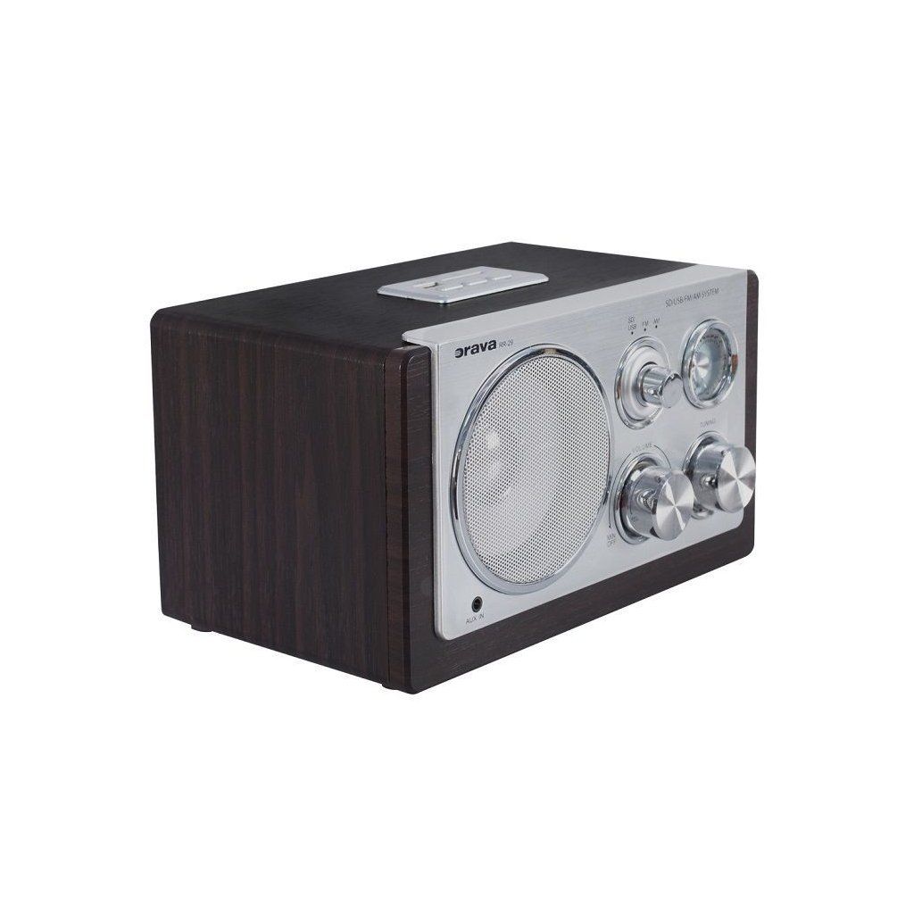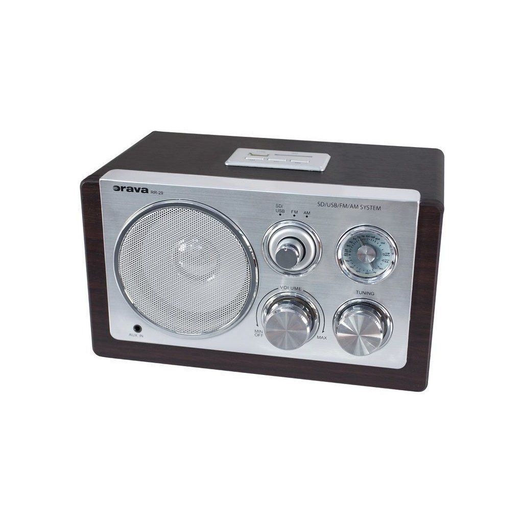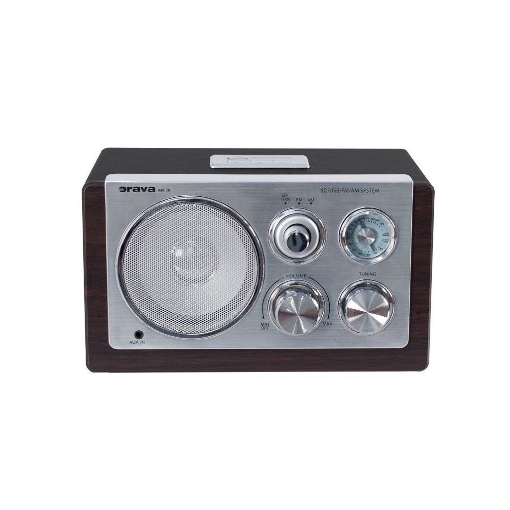 Stylové retro rádio Orava RR-29 v kvalitním dřevěném provedení s vysokoleským stříbrným ovládacím panelem vám zpříjemní poslech vaší oblíbené hudby. Jeho retro design doplňuje jemný modrý akcent na stupnici řízení. Pro kvalitní reprodukci zvuku disponuje širokopásmovým reproduktorem. Jelikož je ovládání rychlé a jednoduché vaše oblíbené rádio stanice, které dennodenně posloucháte si můžete naladit manuálně pomocí teleskopické antény. Pro připojení externího zdroje zvuku slouží 3,5 mm AUX konektor. Designové retro rádio RR-29 disponuje analogovým tunerem s ručirkovým ukazatelem. Rádiu nechybí ani USB vstup, zabudovaná čtečka SD a MMC karty. Rádio také podporuje přehrávání WMA / MP3.