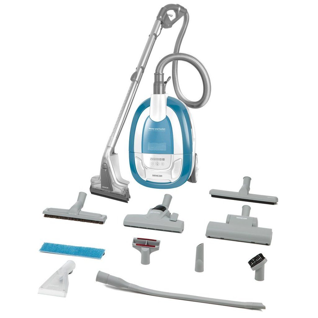 Příslušenství: hubice pro mokré čištění podlah a oken, hubice pro mokré čištění čalounění, hubice pro odsávání vody, kombinovaná podlahová hubice, turbo kartáč, hubice na tvrdé podlahy, dlouhá flexibilní štěrbinová hubice, prachový kartáč, štěrbinová hubice, hubice na čalounění