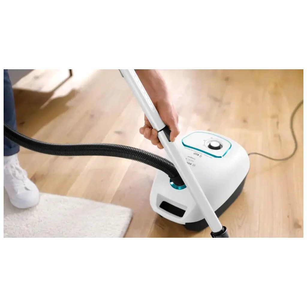 Vysavač je vybaven úsporným motorem o příkonu 700 W s technologií Power Control a systémem PowerProtect, který zajišťuje vysoký sací výkon i při plnějším sáčku. Prachový sáček AirFresh s technologií aktivního uhlí má objem 4 litry a účinně neutralizuje pachy, což ocení především majitelé domácích mazlíčků. Elegantní bílé provedení v sobě skrývá spolehlivého pomocníka, který zvládne koberce, dlažby, tvrdé dřevěné podlahy, linolea i měkké čalounění.