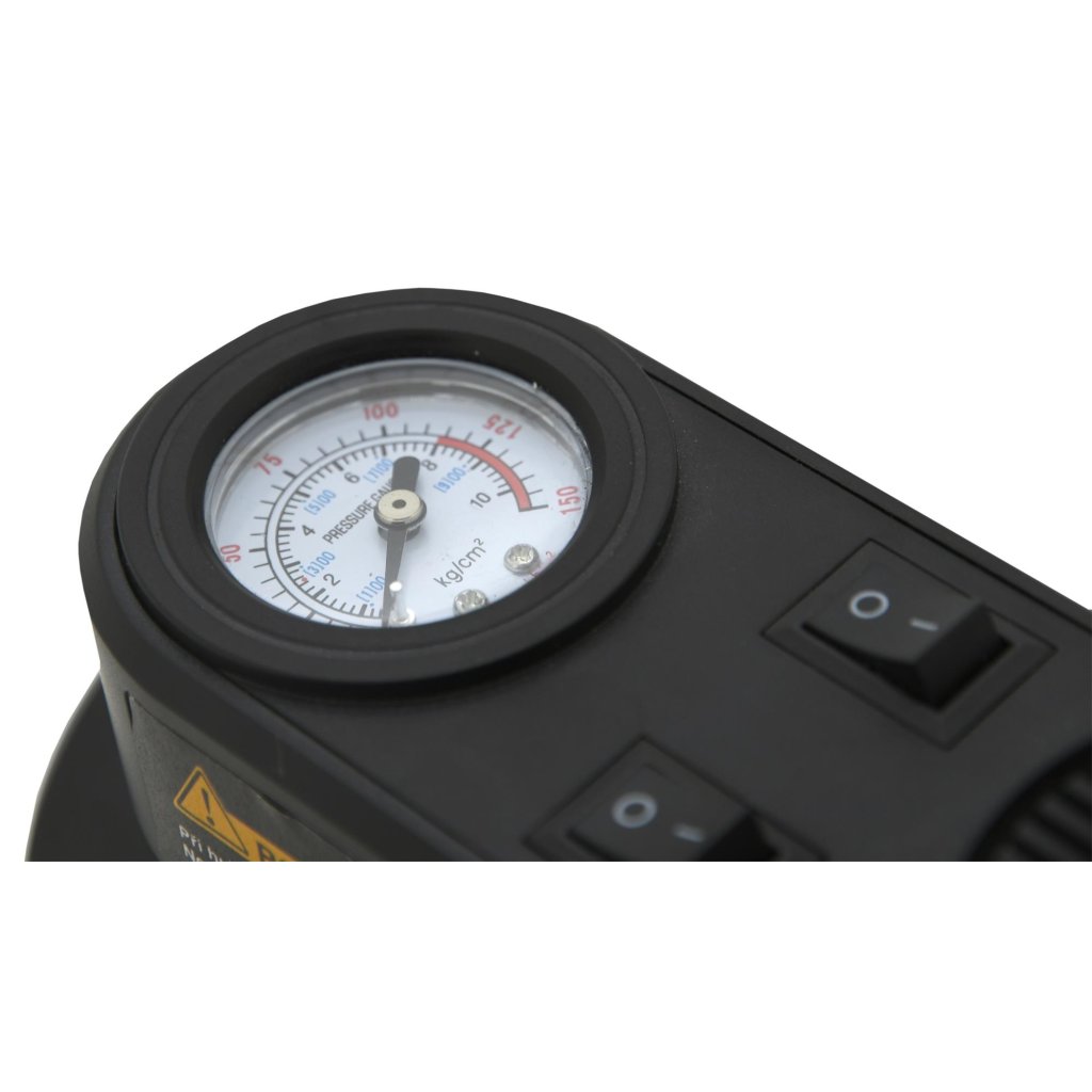 Vysoce výkonný kompresor s vestavěným pneuměřičem a napájením 12V ze zástrčky automobilového zapalovače.