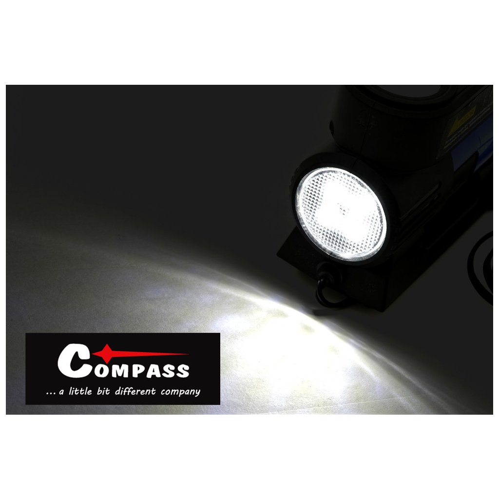 Kompresor je vybavený vestavěným pneuměřičem, který zobrazuje naměřený tlak. Kompresor je navíc v přední části opatřen LED osvětlením.