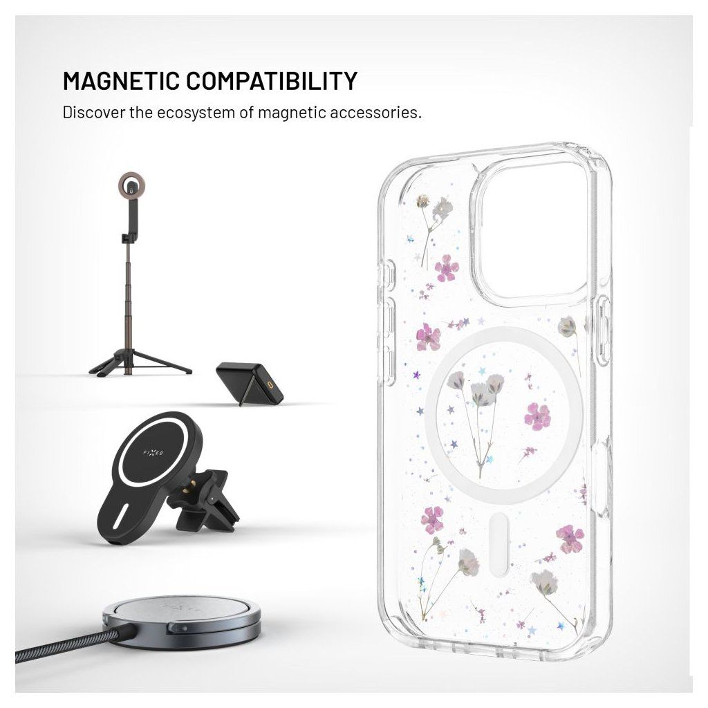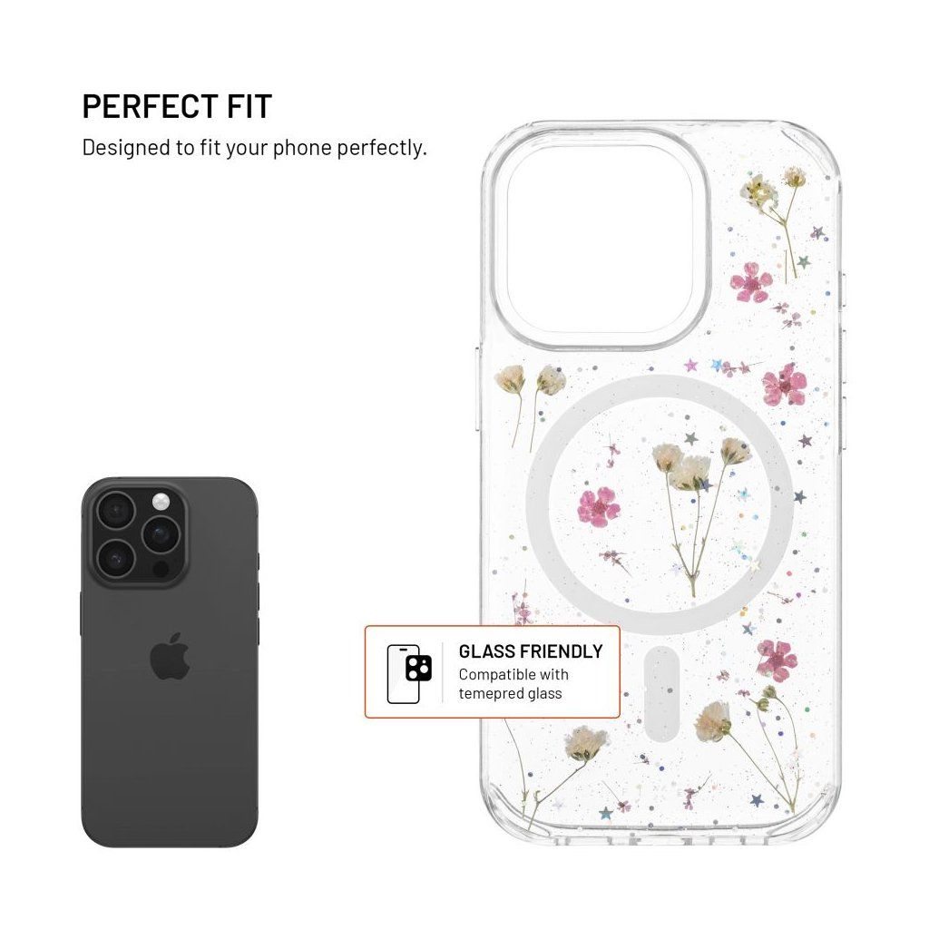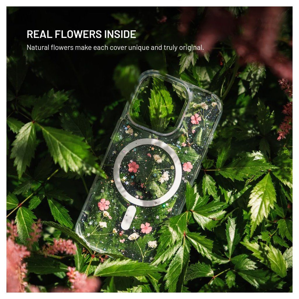Ochranný kryt FIXED MagBloom promění váš telefon ve stylový a zároveň praktický doplněk, který poskytne spolehlivou ochranu při každodenním používání. Zadní strana z tvrzeného polykarbonátu chrání před poškrábáním, zatímco boky z pružného TPU tlumí nárazy a pády. Největší pozornost ale upoutá originální design – přímo do zadní strany jsou zalisovány pravé sušené květy, které si zachovávají svůj přirozený tvar i barvu. Díky tomu je každý kryt originál. Čirý materiál zároveň přirozeně odolává žloutnutí a lehce zvýšené hrany v oblasti fotoaparátu a displeje je chrání před kontaktem s povrchem a případným poškrábáním. MagSafe magnety jsou také zalisované přímo do těla krytu, aby nijak nevystupovaly a nehrozilo jejich vypadnutí. Spolehlivě se tak přichytí k nabíječkám i dalšímu magnetickému příslušenství. S každým kusem FIXED MagBloom získáte originální květinový vzhled spolu se spolehlivou celkovou ochranou.Vlastnosti: