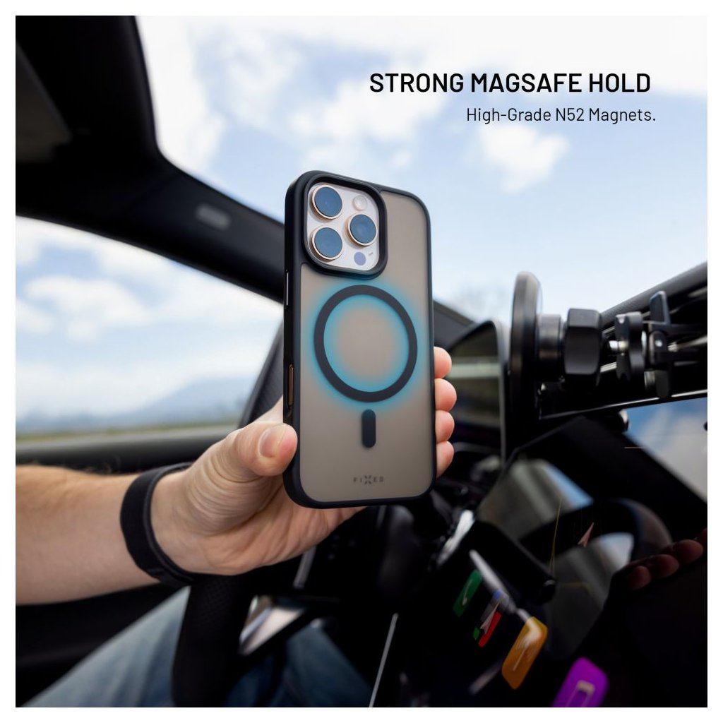 Tvrzený zadní kryt FIXED MagMisty spojuje spolehlivou ochranu telefonu s elegantním designem. Díky integrovaným MagSafe magnetům N52 se kryt pevně a přesně přichytí k MagSafe nabíječkám a příslušenství, takže vše drží přesně tam, kde má. Zadní strana z odolného polykarbonátu v kombinaci s pružnými TPU boky spolehlivě ochrání telefon před nárazy a drobnými pády. Zvýšené okraje na přední straně krytu chrání displej při položení telefonu displejem dolů, zatímco mírně vyvýšené rohy na zadní straně zajišťují, že se kryt nedotýká přímo povrchu a tím účinně předchází poškrábání zad i čoček fotoaparátu. Matný vzhled krytu s kouřovým efektem a precizně zpracované kovové krytky tlačítek okamžitě dodají telefonu moderní styl. Dopřejte si s krytem FIXED MagMisty kvalitní ochranu i pohodlí při každodenním používání.Vlastnosti: