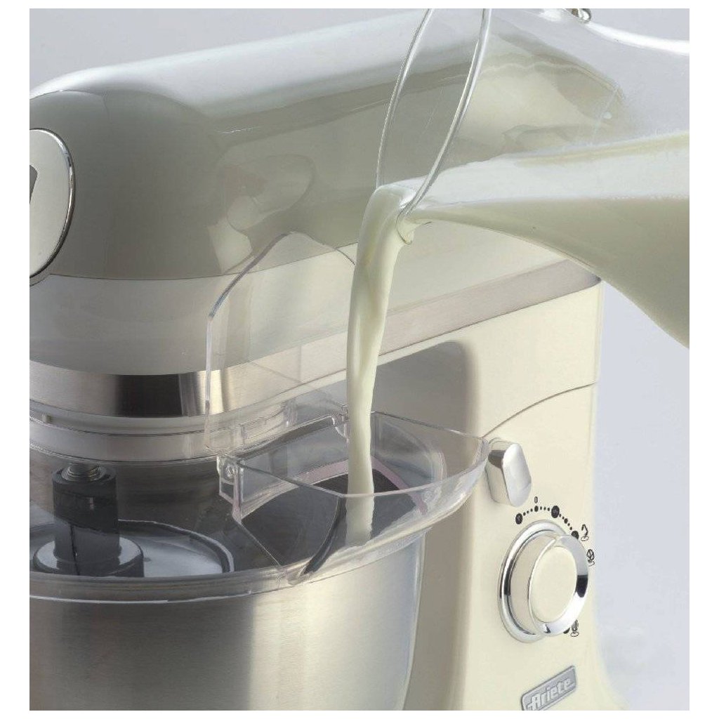 Robot má velkou kovovou misku s objemem 5,5 litru, ve které snadno připravíte těsto s více než kilogramem mouky. Je to ideální volba, kdy očekáváte více hostů. Robot Ariete se navíc snadno čistí. Vybaven chráničem proti stříkající vodě se speciálním otvorem na přidávání přísad a silnými přísavkami, které brání pohybu přístroje po pultu během provozu.