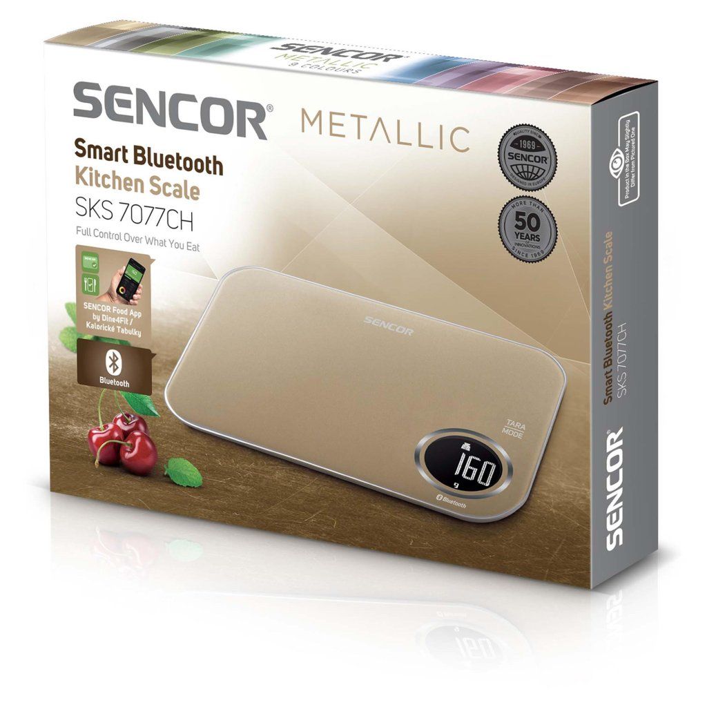 Chytrá kuchyňská váha s Bluetooth - Originální aplikace Sencor FOOD vytvořená ve spolupráci s tvůrci aplikace Kalorické Tabulky s bohatou databází potravin - Poskytuje podrobnosti o výživě pro požadovaný příjem potravy (sacharidy, bílkoviny, tuky, cholesterol, vláknina…) - Bíle podsvícený LCD displej s 2cm číslicemi - Váživost do 5 kg / 11 lb (rozlišení 1 g / 0,1 oz) Chytrá kuchyňská váha vám pomůže udržet dokonalý přehled o kalorickém příjmu a jednotlivých nutričních složkách. Je navázána na nejlepší dostupnou databázi potravin, protože ovládací aplikace Sencor FOOD byla připravena ve spolupráci s autory populární aplikace Kalorické tabulky. Bluetooth spojení váhy s telefonem je dokonale rychlé, intuitivní a snadné. Prakticky ihned tak na displeji svého chytrého telefonu (a je jedno, jestli preferujete zařízení s Androidem nebo iOS) uvidíte naváženou hmotnost, pak už jen stačí zadat, co zrovna vážíte a hned víte, kolik daná potravina obsahuje cukrů, tuků, energie… Chytrá funkce se snoubí s dokonalým designem Tahle váha je součástí prémiové metalické řady kuchyňských pomocníků Sencor. Je k dispozici v 9 barevných provedeních a bude ozdobou každé kuchyně. Velkými bílými číslicemi svítící kruhový displej je perfektně čitelný a přehledný, vždyť výška jedné číslice je 2 cm. Aplikace Sencor FOOD Váha je vybavena bezdrátovou technologií Bluetooth, která ve spojení s bezplatnou aplikací Sencor FOOD nainstalovanou do vašeho chytrého zařízení nabízí přímý přístup k bohaté a pravidelně aktualizované databázi potravin a jejich nutričním hodnotám. Aplikace Sencor FOOD byla vyvinuta ve spolupráci s tvůrci aplikace Kalorické tabulky / Dine4Fit a je určena pro chytré telefony s operačním systémem iOS (verze 13 a vyšší) nebo Android (verze 5 a vyšší). Při používání aplikace musí být telefon připojen k internetu. Připojení váhy k telefonu probíhá automaticky po spuštění aplikace. Ke spárování postačí, aby na chytrém zařízení byla zapnuta funkce Bluetooth. Pokud aplikace váhu nenalezne, aktivně vás vyzve, abyste zkusili váhu znovu připojit. Poznámka: Váha se v jeden okamžik umí připojit pouze k jednomu mobilnímu zařízení. Při potížích se spárováním se ujistěte, že v dosahu není jiné zařízení, které je právě aktivně připojené k váze. Aplikace nabízí dva režimy vážení: - Režim „Na váze" – zobrazí hmotnost právě vážené položky. Poté, co pomocí pole „Vyhledejte potravinu" váze sdělíte jakou potravinu vážíte, vám zobrazí nutriční hodnoty potraviny vztažené k navážené aktuální hmotnosti. - Režim „Seznam" – umožňuje zjistit souhrnnou nutriční hodnotu více potravin. Tento režim se hodí například při přípravě pokrmu dle receptu. Na váhu postupně přidávejte potraviny, pomocí pole „Vyhledejte potravinu" zadejte o jakou potravinu se jedná. V momentě, kdy máte určenu hmotnost i druh potraviny ji pomocí tlačítka „+ Přidat potravinu do seznamu" přidejte do celkového nutričního součtu. Dle potřeby během vážení používejte tlačítko TARA/MODE na váze pro dovažování. Váha po celou dobu vážení v režimu „Seznam" ukazuje průběžně celkovou hmotnost ingrediencí a dopočítá hmotnosti jednotlivých nutričních složek (například kolik gramů sacharidů celkem navážené potraviny obsahují). Aplikace Sencor FOOD je provázána s aplikací Kalorické tabulky. Na konci vážení si tak své jídlo jedním kliknutím můžete zapsat do svého jídelníčku v Kalorických tabulkách a vést si tak dlouhodobý přehled o přijímaných potravinách (Některé pokročilé funkce aplikace Kalorické tabulky mohou být zpoplatněny). Vlastnosti váhy: - Napájení: 2 × 1,5 V AAA baterie - Váživost do 5 kg / 11 lb (rozlišení 1 g / 0,1 oz) - Způsob zapnutí: tlakem nebo zatížením váživé plochy - Automatické vypnutí v nečinnosti - Veliký přehledný kruhový displej s výškou zobrazované číslice 2 cm - 3 režimy: Režim vážení / režim měření objemu mléka / režim měření objemu vody. - Možnost přepínání mezi metrickými (gramy a mililitry) a imperiálními jednotkami (lb:oz / fl’oz) - Inteligentní funkce TARA pro dovažování potravin - Položte prázdnou nádobu na váhu. Na displeji se zobrazí její hmotnost a symbol „O". Stisknutím tlačítka TARA/MODE se hodnota vynuluje. Symbol „O" svítí dál. - Do nádoby vložte první potravinu. Na displeji se zobrazí její hmotnost. Stisknutím tlačítka TARA/MODE se hodnota vynuluje a rozsvítí se symbol „T". Hmotnost první potraviny se tím uložila do paměti a váha je připravena k dalšímu vážení. - Do nádoby vložte druhou potravinu. Na displeji se zobrazí její hmotnost. Stisknutím tlačítka TARA/MODE se zobrazí součet hmotnosti první a druhé potraviny. Dalším stisknutím TARA/MODE se součet uloží do paměti a hodnota na displeji se vynuluje. Symbol „T" svítí dál.Doplňkové parametry