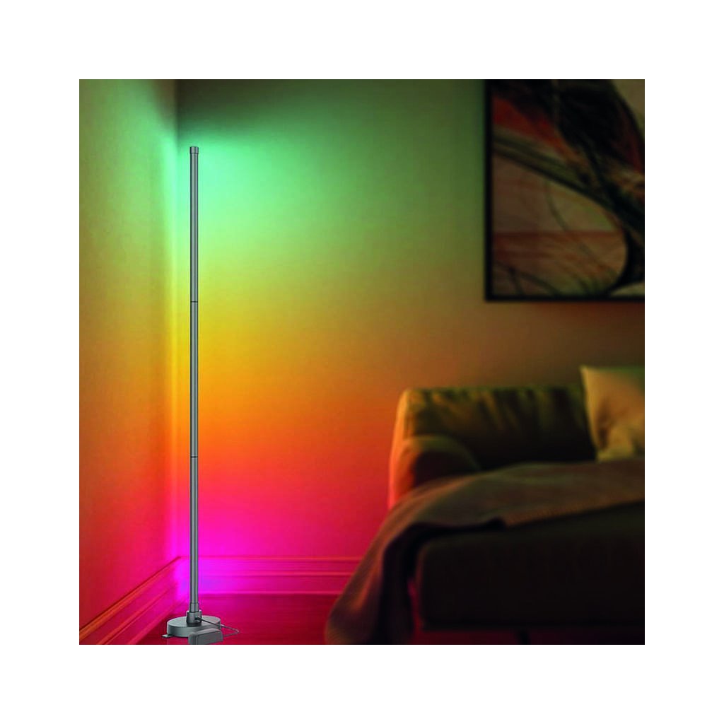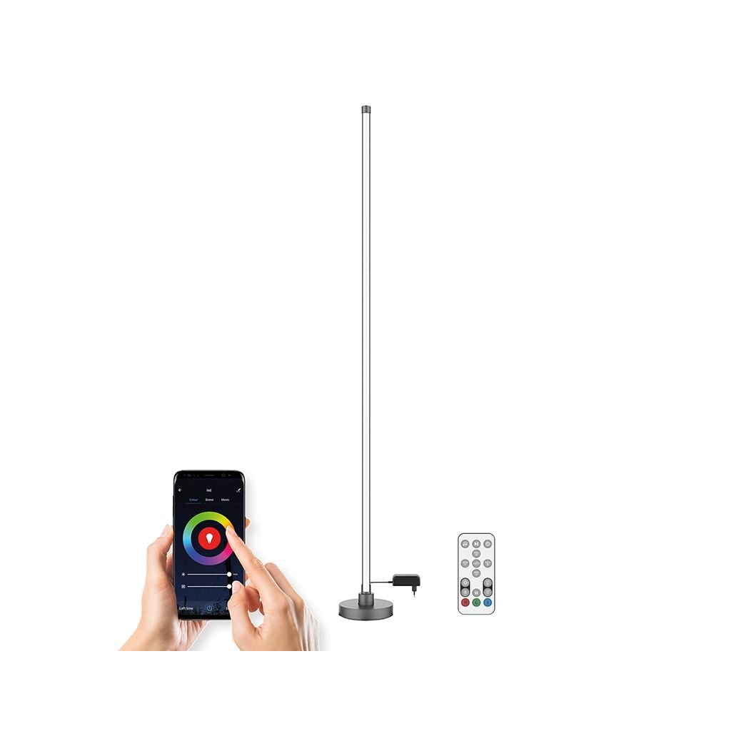 LED SMART WIFI stojací lampa je ovládaná chytrým telefonem. Podporuje Wifi 2,4GHZ, Android 4.1 a vyšší a IOS 8.0 a vyšší. Umožňuje nastavovat různé režimy svícení, barvy (RGB) a intenzitu světla. LED pásek lze ovládat i dálkovým ovladačem, který je součástí balení.