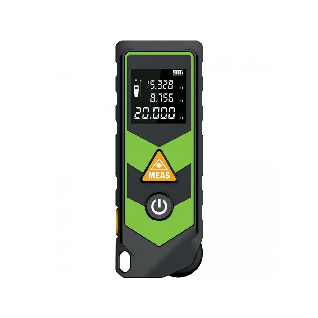 Laserový měřič vzdálenosti, plochy a objemu je skvělou pomůckou při plánování stavby nebo přestavby v interiéru i exteriéru. Měřič je velice přesný nejen díky zabudované vodováze a lze jej využít k měření vzdáleností od 5 cm až do 50 m. Při měření plochy nebo objemu stačí laser postupně namířit do rohů měřeného objektu podle návodu a schématu přímo v měřiči. Součástí balení jsou 3 x AAA tužkové baterie.