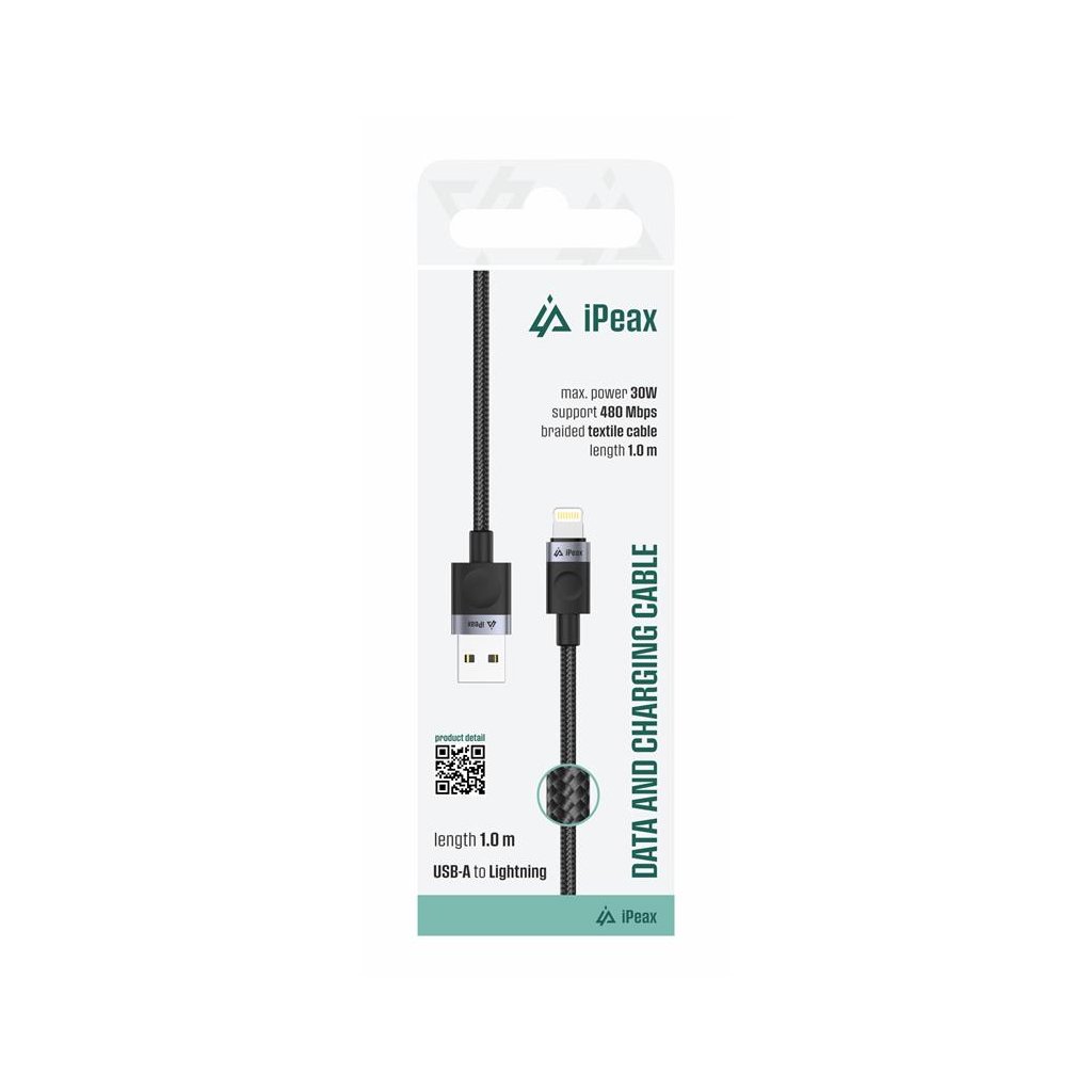 iPEAX textilní kabel USB-A / Lightning 1M, USB 2.0 černý