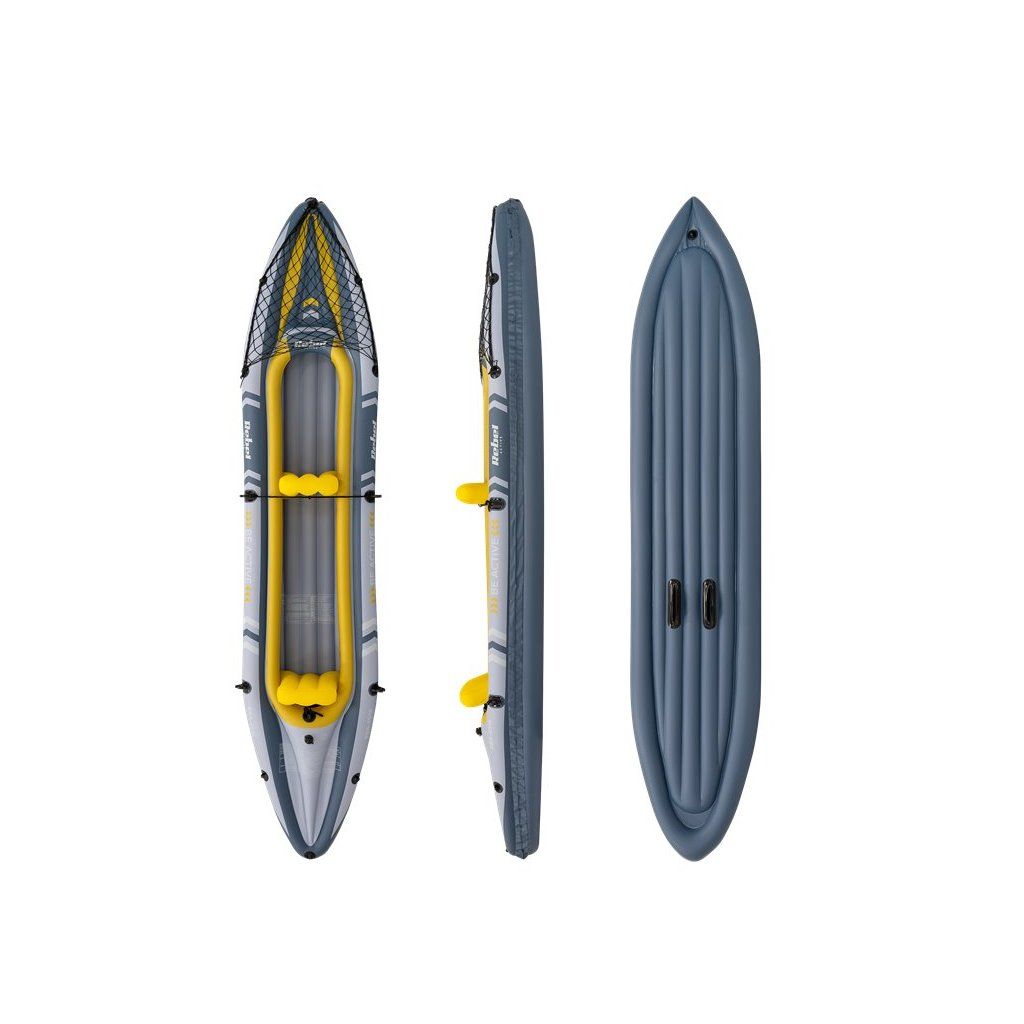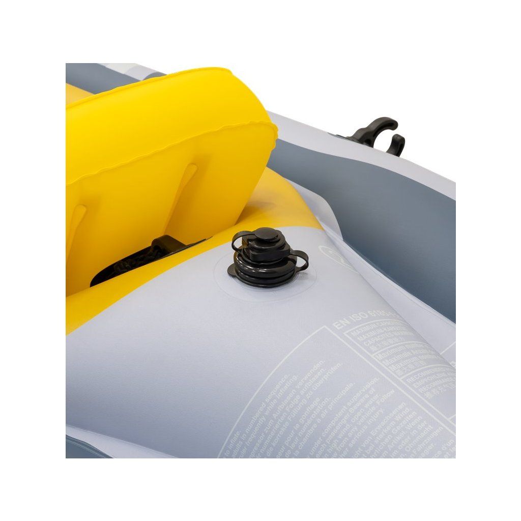 - Stabilní a bezpečná konstrukce: Vyšší boky o výšce 52 cm zvyšují stabilitu a chrání posádku před stříkající vodou, vícekomorové řešení pomáhá udržet kajak na hladině i při poškození jedné z komor.
