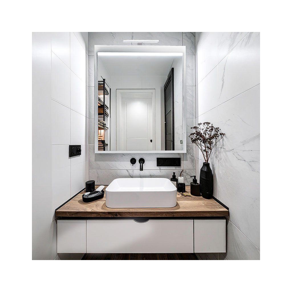 - Světelný výkon: Svítidlo poskytuje světelný tok 455 lm při příkonu 7 W, což zajišťuje dostatečné a energeticky úsporné osvětlení prostoru před zrcadlem.