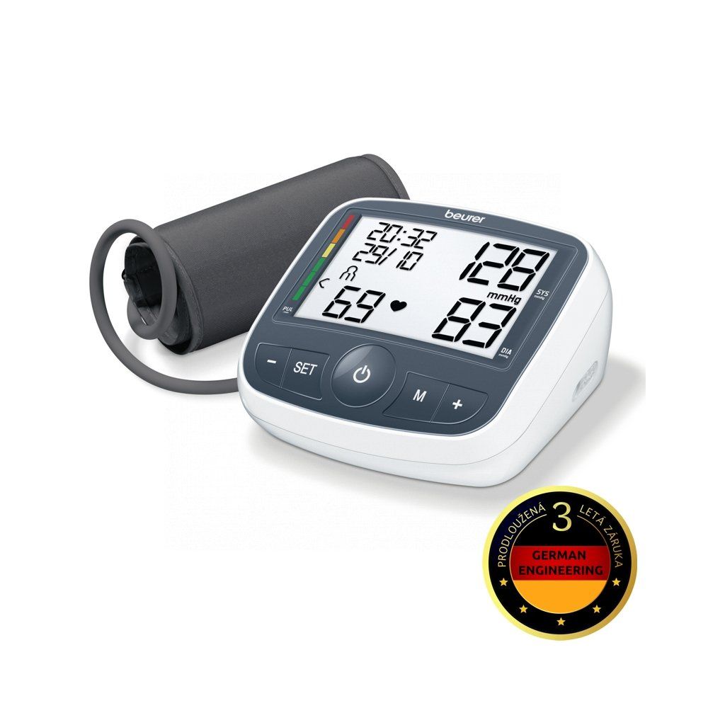 Automatický tlakoměr na paži Beurer BM 40 s velkým, dobře čitelným displejem, funkcí detekce arytmie, klasifikace krevního tlaku dle WHO. Naměřené hodnoty krevního tlaku lze uložit do paměti přístroje a vyhodnotit je za delší časový úsek. Vysoký krevní tlak je nebezpečný a s tlakoměrem od firmy Beurer si ho můžete denně kontrolovat a předejít tak možným zdravotním komplikacím.