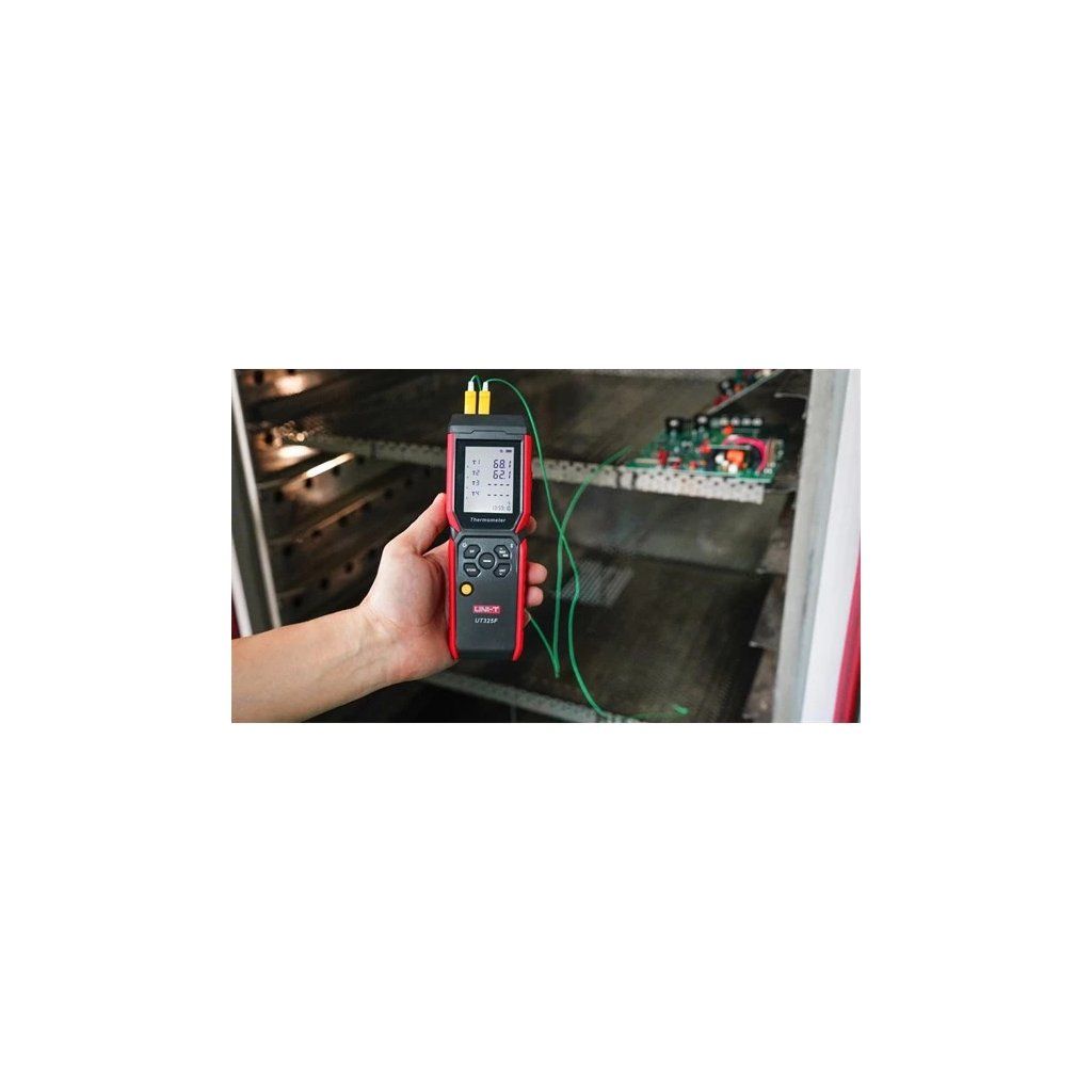 Profesionální digitální kontaktní teploměr UNI-T UT325F představuje pokročilé řešení pro přesné měření teploty v průmyslu, výzkumu i domácnosti. Tento čtyřkanálový teploměr s termočlánky nabízí širokou kompatibilitu s různými typy teplotních sond a umožňuje současné měření na čtyřech místech. Díky pokročilým funkcím jako je automatické zaznamenávání dat, Bluetooth připojení a možnost exportu naměřených hodnot je ideální volbou pro profesionály i pokročilé uživatele.