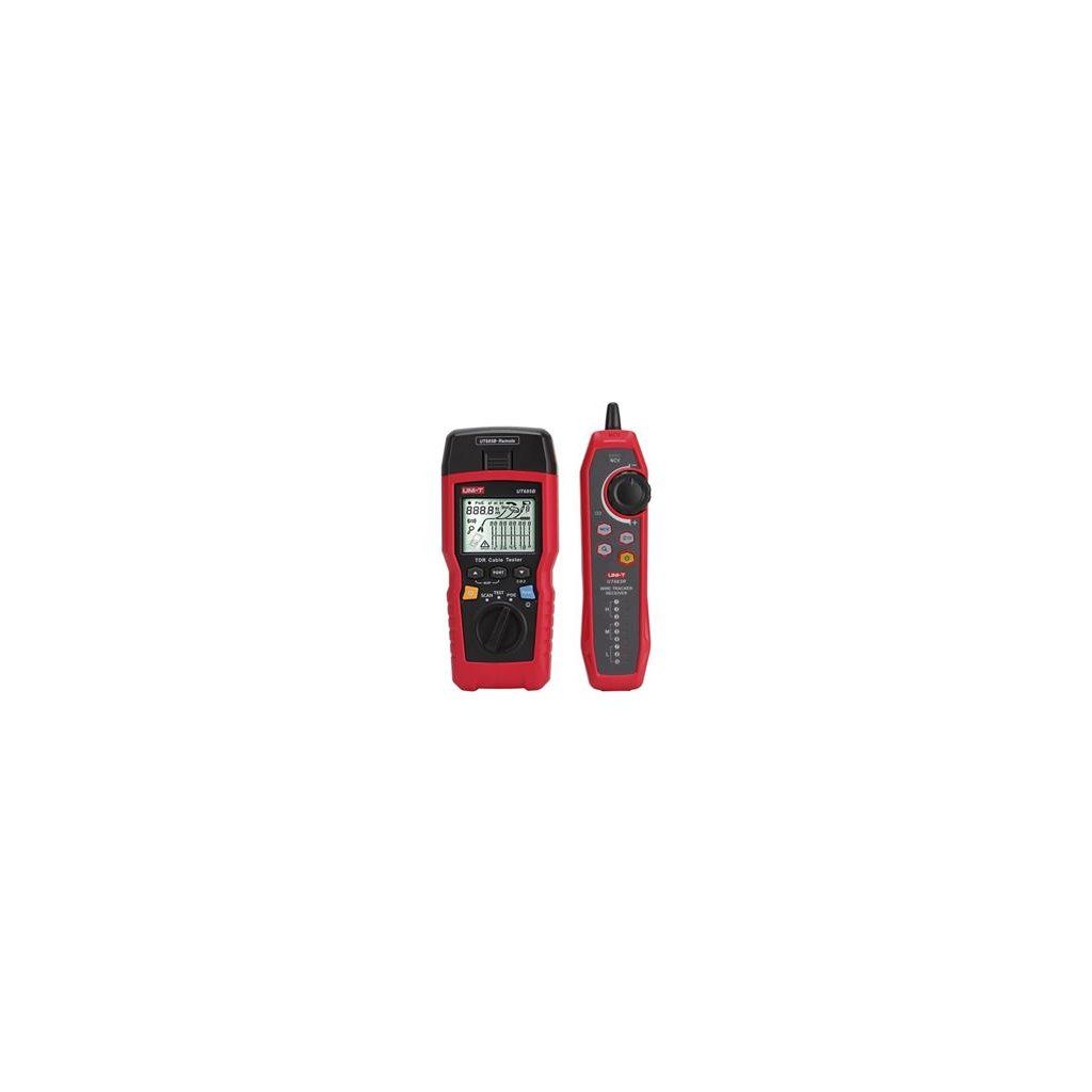 Tester kabelu UT683B KIT je ruční tester kabelů TDR, vhodné pro měděné kabely (CAT 5E, CAT 6, CAT 6A nebo CAT 8),který se používá k detekci a diagnostice stavu zapojení kroucených párů a koaxiálních kabelů, detekci síťových služeb, zkratů/otevřených obvodů v síťové kabeláži, rozdělení páru, chybného zapojení atd. Lze jej také použít ke zjištění, zda je v síťové kabeláži přívod PoE (modul POE), a standardu PoE (802.3AF, 802.3AT, 802.3BT). Na obrazovce lze současně zobrazit mapu vodičů, délku kabelu, místo přerušeného obvodu a další informace. Tester kabelů se vyznačuje přesností, snadnou obsluhou, viditelným zobrazením, což z něj činí ideální nástroj pro údržbu síťové komunikace,