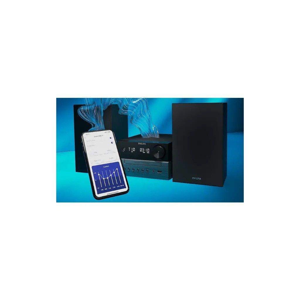 Philips TAM3505M2 je kompaktní mikrosystém určený pro přehrávání hudby z různých zdrojů v domácím prostředí. Nabízí stereofonní zvuk s reproduktory Bass Reflex, přehrávání CD (včetně MP3 a vypalovaných CD), připojení přes Bluetooth 5.4, podporu DAB+/FM rádia a možnost přehrávání z USB. Díky aplikaci Philips Home Entertainment a podpoře systému Auracast lze jednotku pohodlně ovládat a streamovat obsah ze smart zařízení.