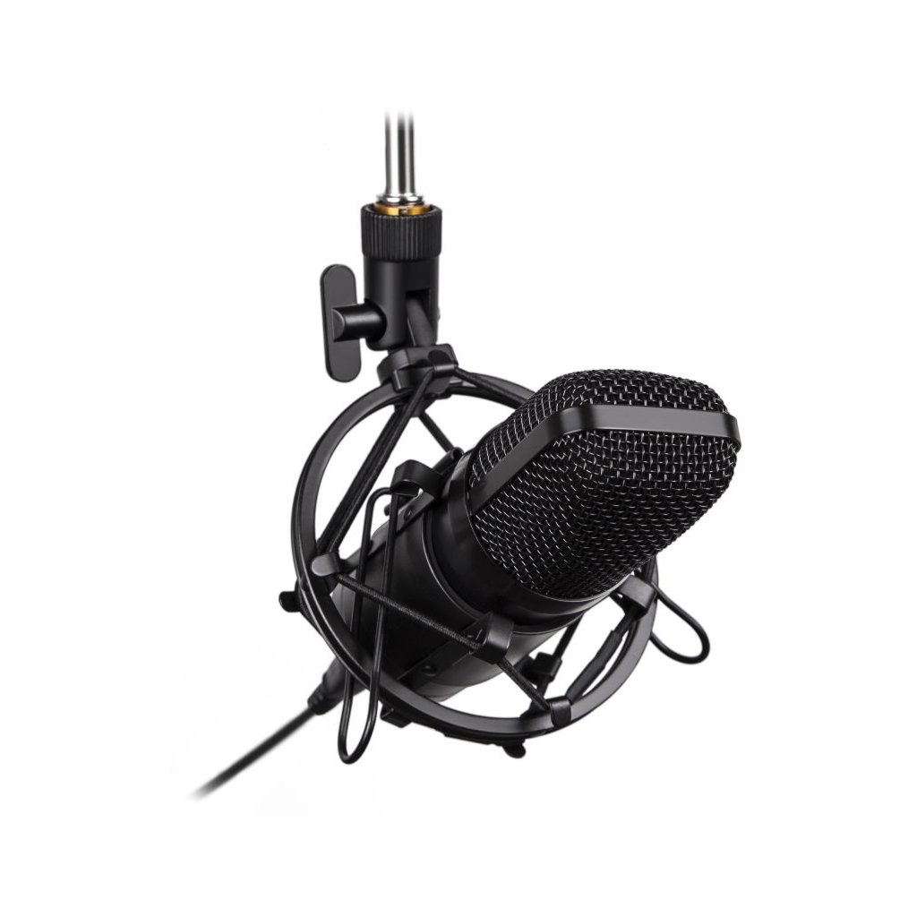 USB mikrofon se stolním ramenem a POP filtrem ideální pro záznam hlasu, zvuků a ruchů, hraní her, streamování, chatování (Messenger, Skype atp.), karaoke