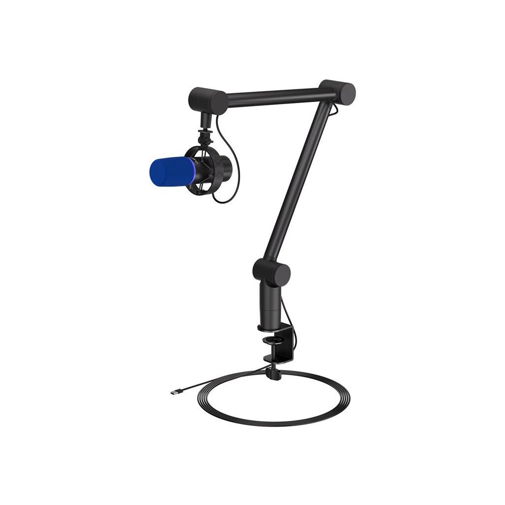 Kvalitní mikrofon s kardioidní charakteristikou a nastavitelným ramenem je ideální pro streamování, natáčení vlogů, podcastů či hlasovou komunikaci. Vybaven je držákem proti otřesům, integrovaným pop filtrem a dotykovým tlačítkem pro ztlumení mikrofonu. Moderní vzhled mikrofonu je doplněn o přizpůsobitelné ARGB podsvícení, které zároveň signalizuje ztlumení mikrofonu. Samozřejmostí je 3,5 mm jack pro připojení sluchátek společně s regulací hlasitosti přehrávání. Mikrofon nabízí jednoduchou a pevnou montáž pomocí šroubu ke stolní desce. Součástí balení je 3 m dlouhý připojovací kabel USB-C na USB-A.