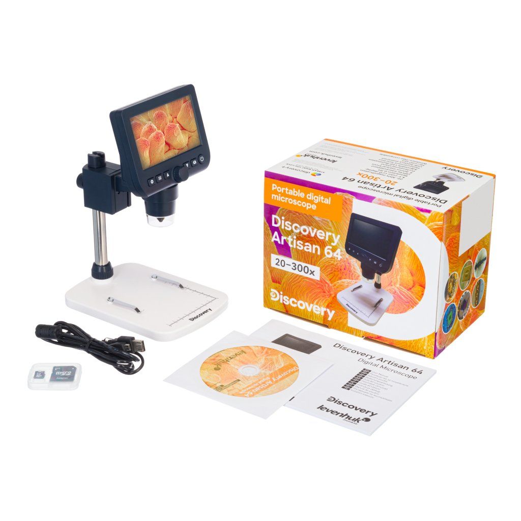 Digitální mikroskop Levenhuk Discovery Artisan 64 se snadno používá, protože je vybaven vestavěnou LCD obrazovkou. Kvůli této vlastnosti není nutné mikroskop připojovat k PC, ale lze jej používat také s počítačem, protože je kompatibilní s operačními systémy Windows a Mac OS (připojení přes kabel USB). Mikroskop má široké pole použití: opravy malých zařízení, pájení mikroobvodů, studium kovů, ostření čepelí nožů, kontrola pravosti starých mincí, restaurování uměleckých předmětů a mnoho dalšího. Má horní osvětlení, pomocí tohoto přístroje můžete studovat pouze neprůhledné objekty.