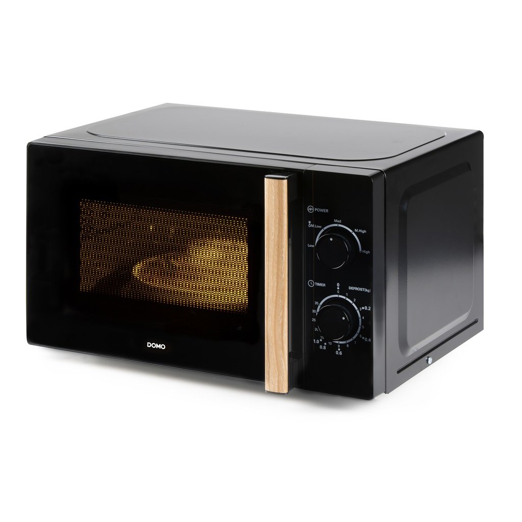 Mikrovlnná trouba DOMO DO2820 představuje ideální řešení pro moderní domácnosti, které hledají spolehlivý a jednoduchý spotřebič pro každodenní ohřívání a rozmrazování jídel. Tato kompaktní mikrovlnná trouba s objemem 20 litrů nabízí dostatečný prostor pro pohodlné ohřívání pokrmů na talířích o průměru až 27 cm, přičemž zachovává elegantní černý design s atraktivním dřevěným dekorem na rukojeti.
