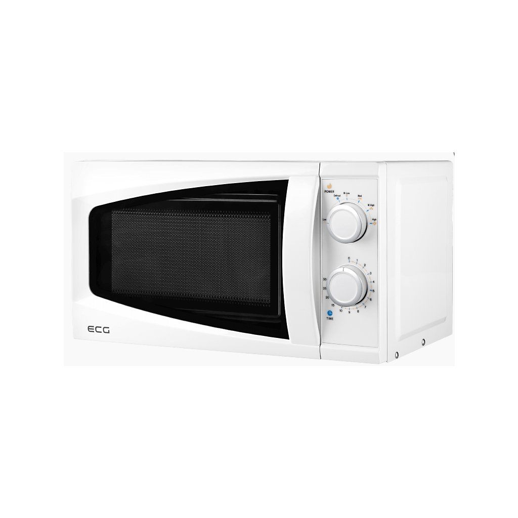 Mikrovlnná trouba s manuálním ovládáním ECG MTM 2070 W je vybavena praktickým integrovaným madlem zaručujícím snadné otevření dveří a vnitřním užitným objemem 20 litrů. O snadný ohřev pokrmů se postará mikrovlnný výkon 700 wattů. Jednoduché ovládání zajistí dva otočné knoflíky, se kterými si snadno nastavíte jednu z šesti různých úrovní výkonu. Mezi užitečné funkce lze zařadit automatické rozmrazování podle váhy nebo časovač až na 30 minut. Na ukončení ohřevu Vás upozorní dostatečná zvuková signalizace.