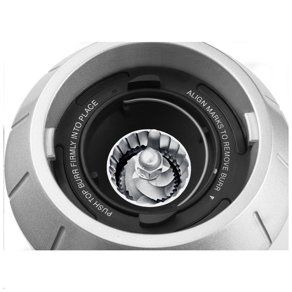 Tělo mlýnku tvoří robustní kovový odlitek – je proto velice odolný a dobře se udržuje v čistotě. Je vhodný jak domů, tak do náročných provozů, kde oceníte zabudovaný mikrospínač páky.